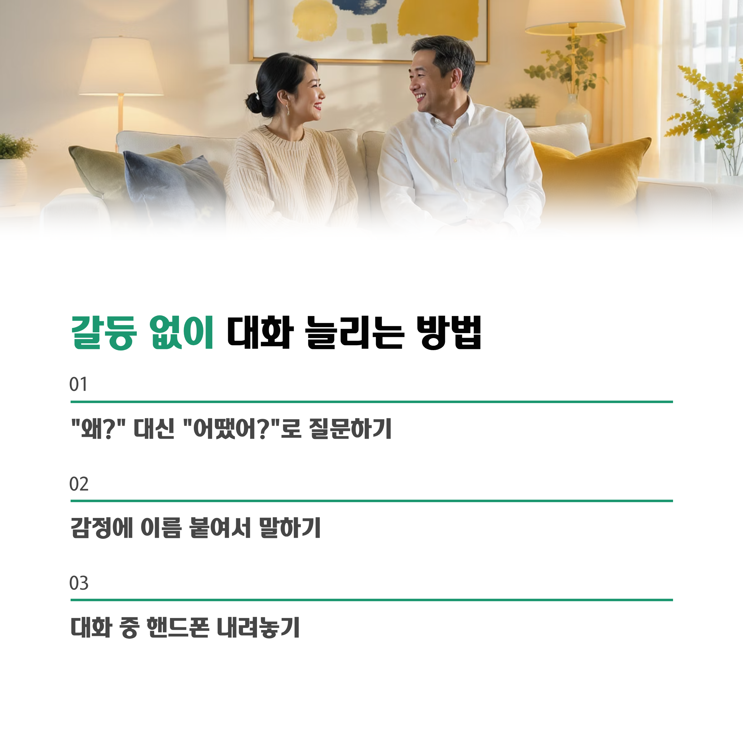 "같은 집에 살아도, 말이 통하지 않아 외로운 당신에게. 오늘부터 남편과의 대화, 다시 시작할 수 있어요."