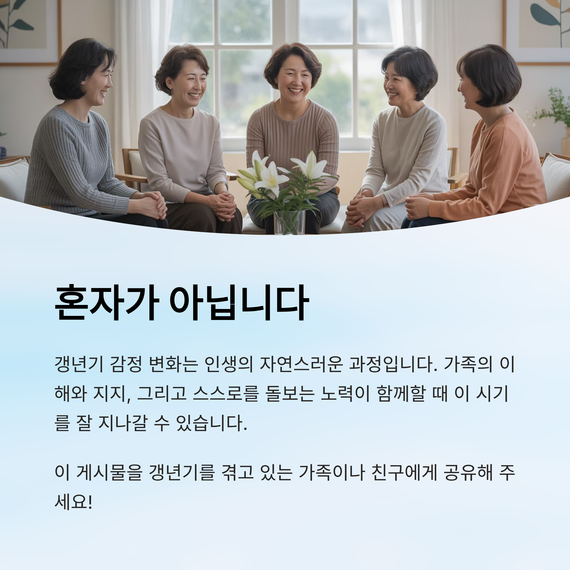 - 심리 상담 또는 갱년기 지원 모임 참여