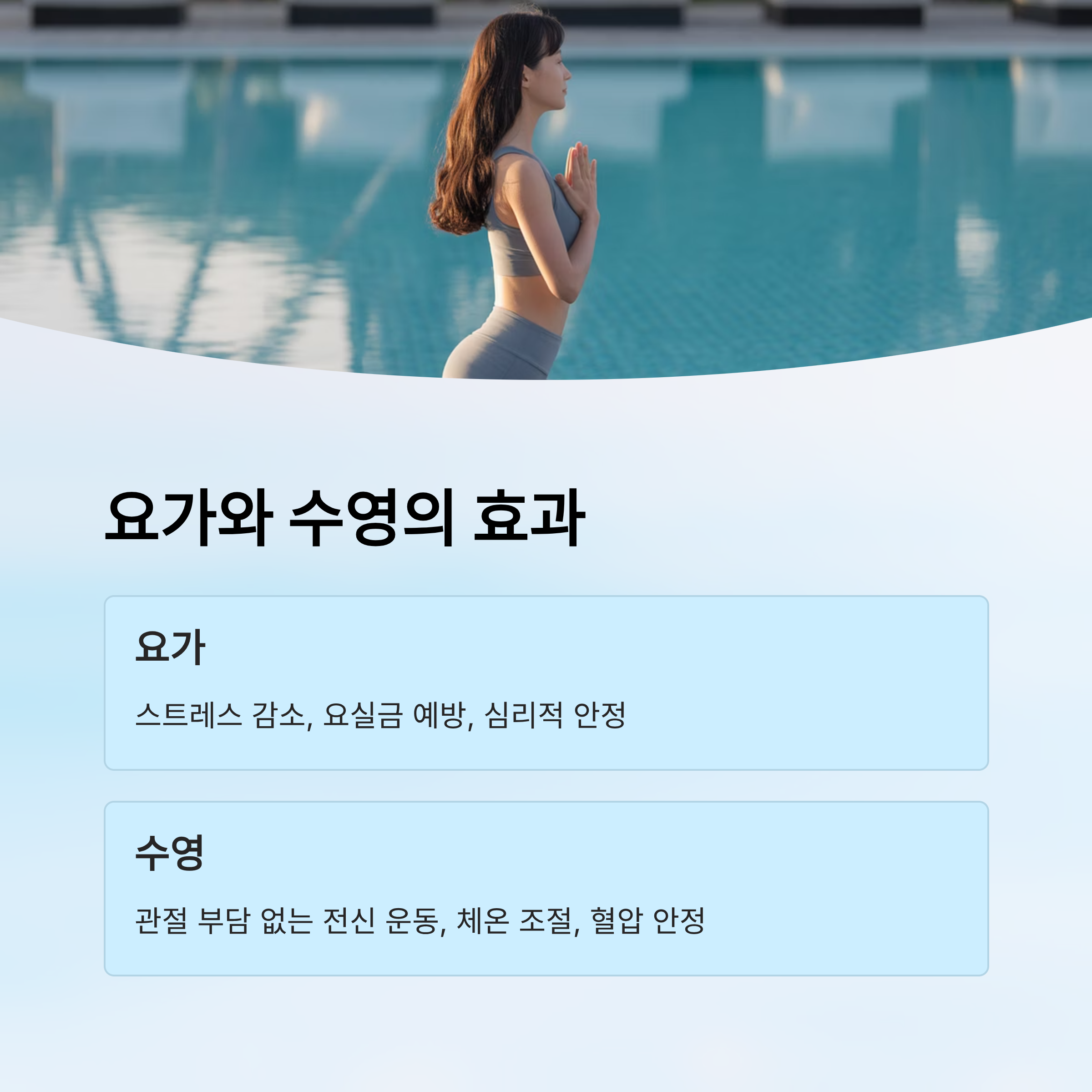 • 수영 전후로 스트레칭과 가벼운 준비 운동 필수