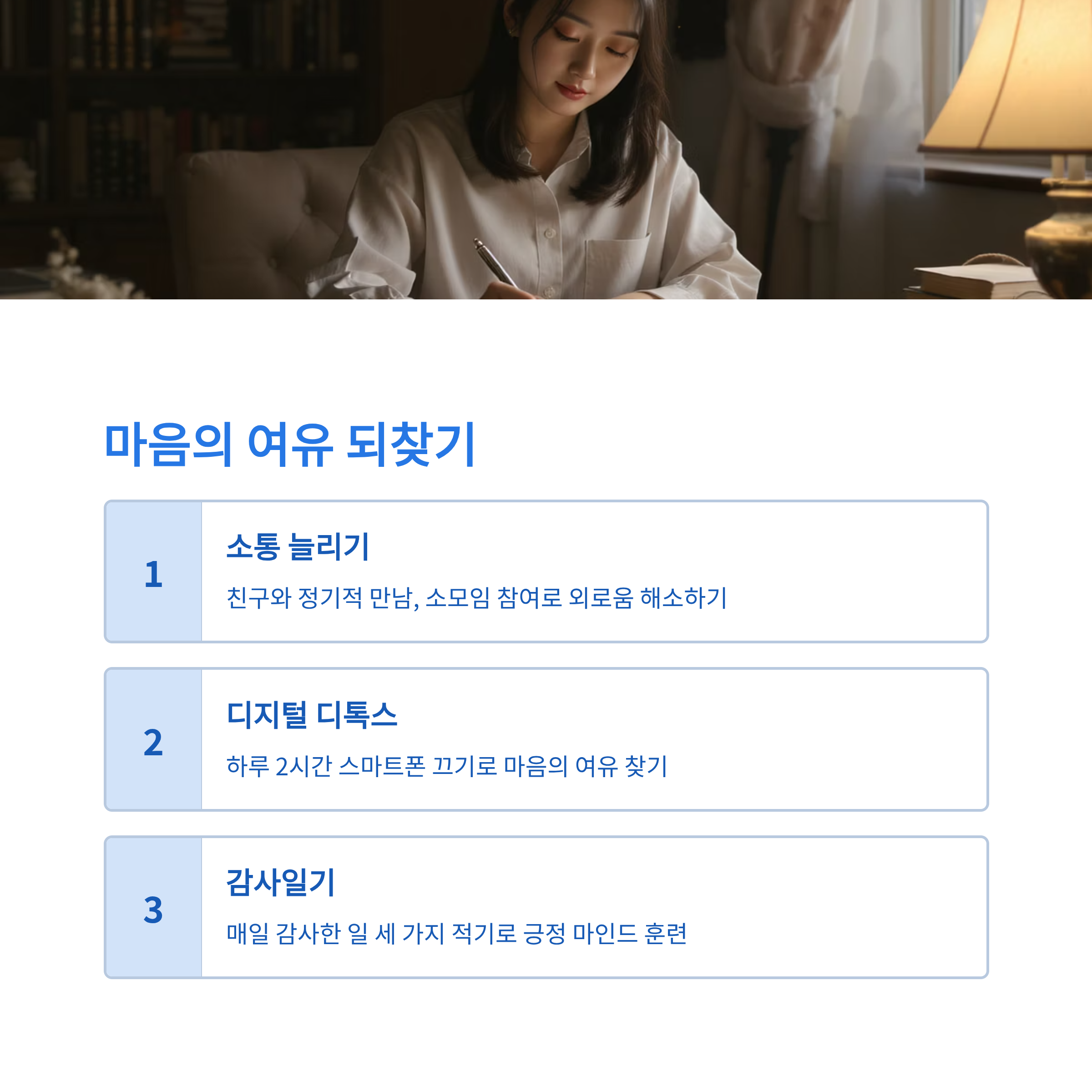 작고 평범한 일상 속에서 감사를 찾는 연습은 갱년기 우울감을 줄이는 데 매우 효과적이에요. 저는 자기 전, 오늘 감사했던 일을 세 가지씩 적기 시작했어요. 아무것도 떠오르지 않을 때도 억지로라도 적어봤더니, 마음이 조금씩 밝아지는 걸 느꼈어요.