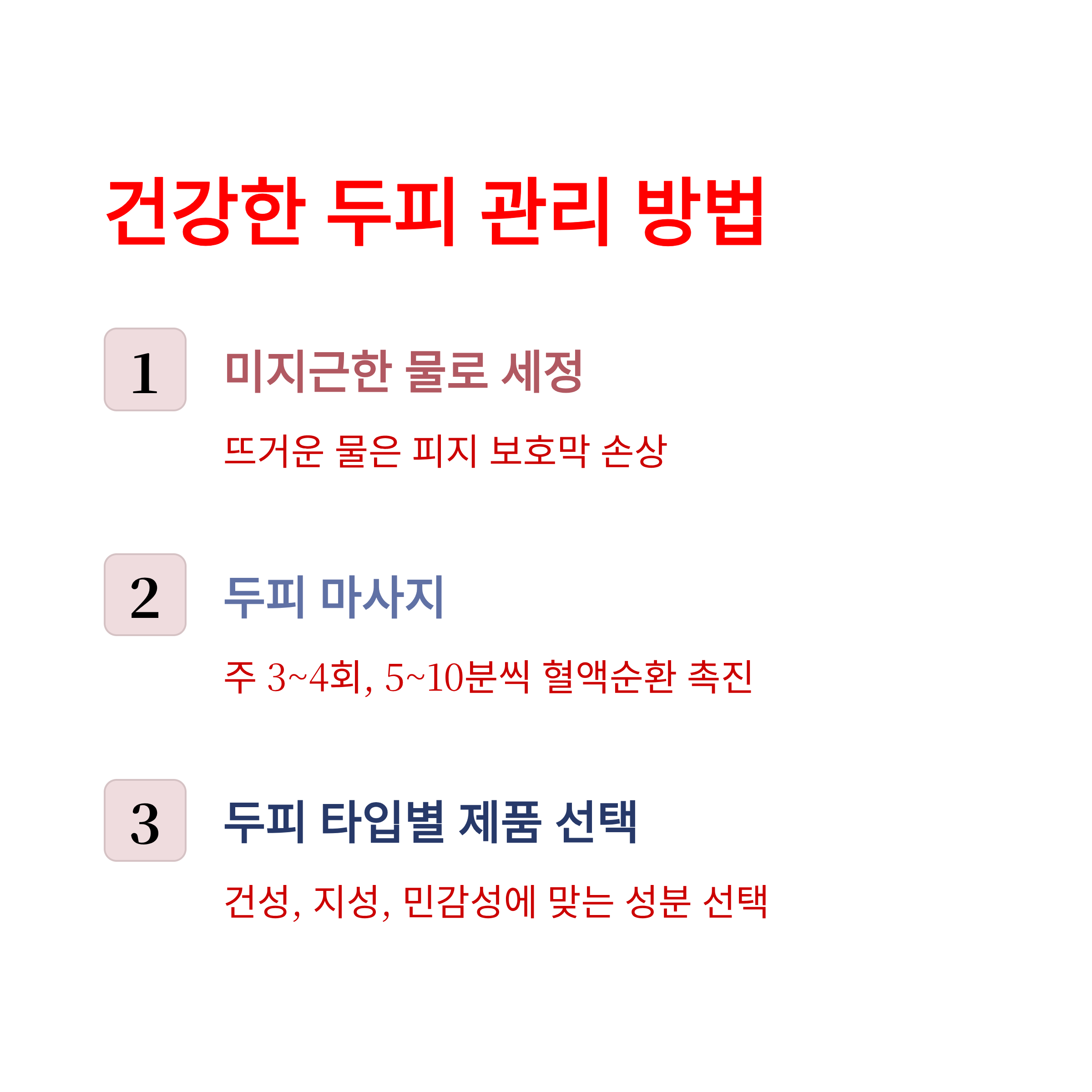 1. 미지근한 물로 두피 세정 – 뜨거운 물은 피지 보호막을 손상시킬 수 있습니다.