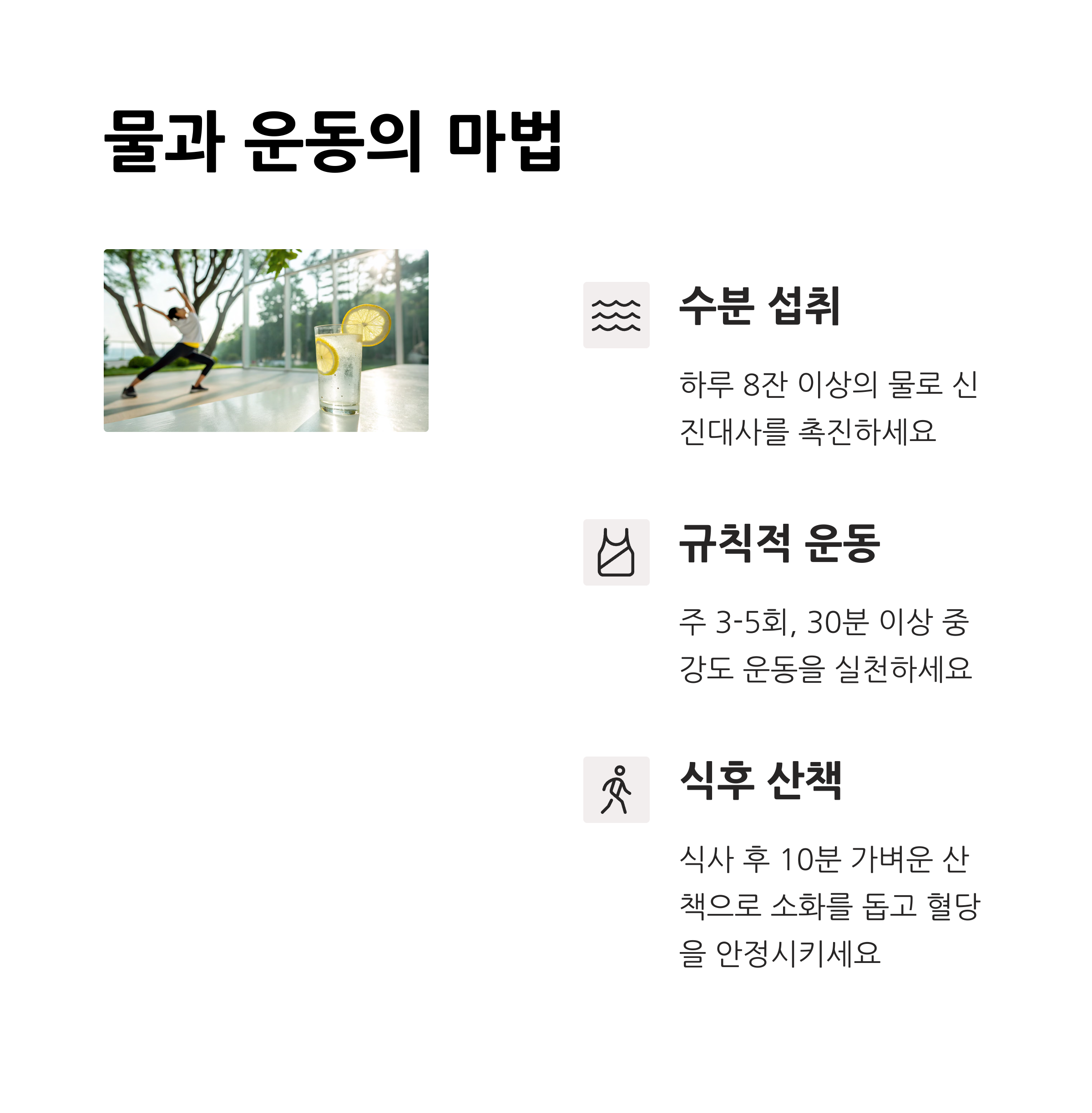 | 규칙적인 식사 | 하루 세 끼를 일정 시간에 맞춰 먹는 것 |