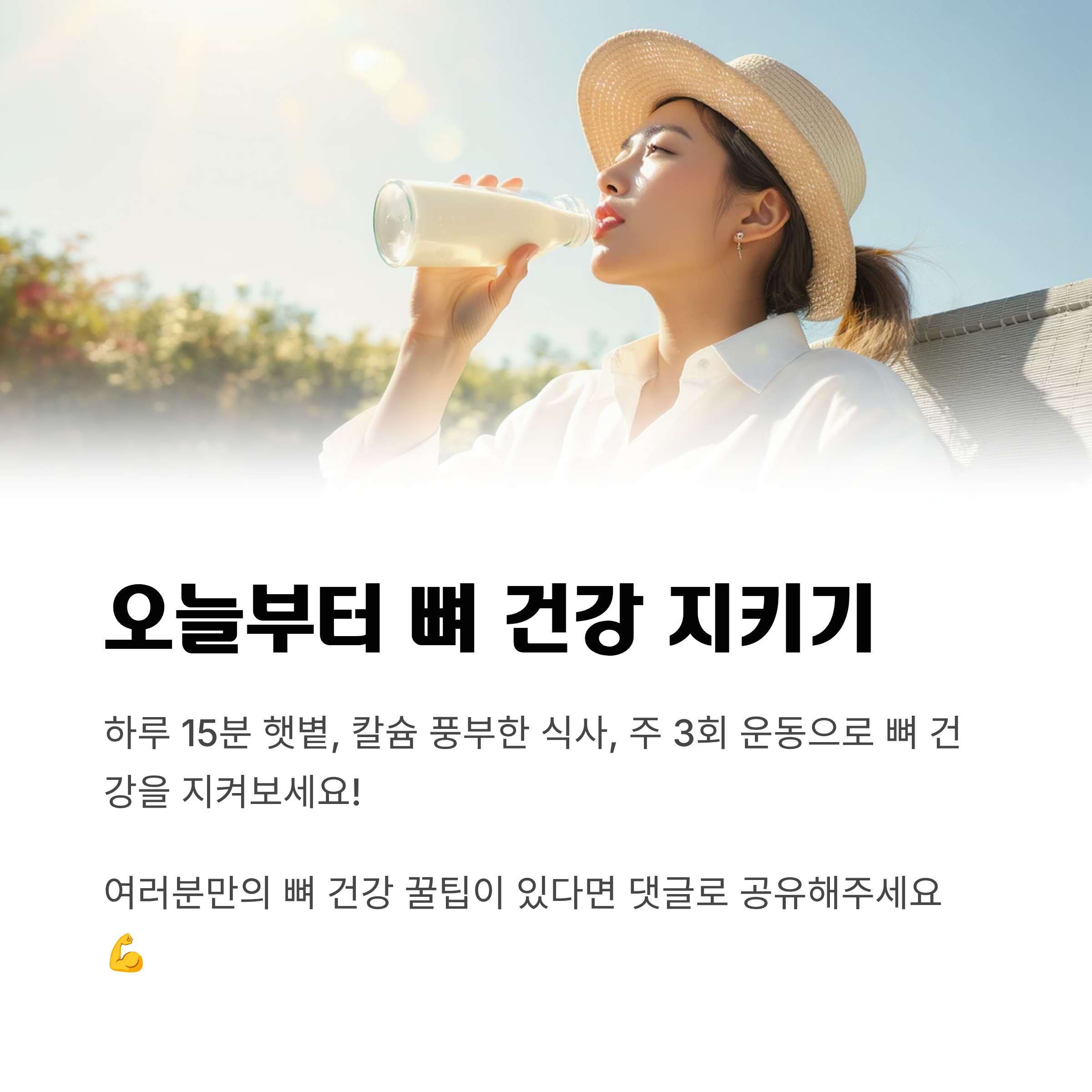 나이 들수록 뼈는 조용히, 그러나 확실히 약해집니다. 저도 처음엔 몰랐어요. 골다공증이 먼 이야기 같았는데, 어느 날 계단을 오르내릴 때 무릎이 시큰거리면서 '이게 시작일까?'라는 생각이 들더라고요. 그래서 바로 실천하기 시작했죠. 뼈는 한 번 약해지면 되돌리기 어렵지만, 꾸준히 관리하면 충분히 지킬 수 있어요. 여러분도 오늘부터 작은 습관 하나씩 실천해 보세요. 댓글로 여러분만의 뼈 건강 꿀팁도 함께 나눠주시면 서로 큰 도움이 될 거예요!