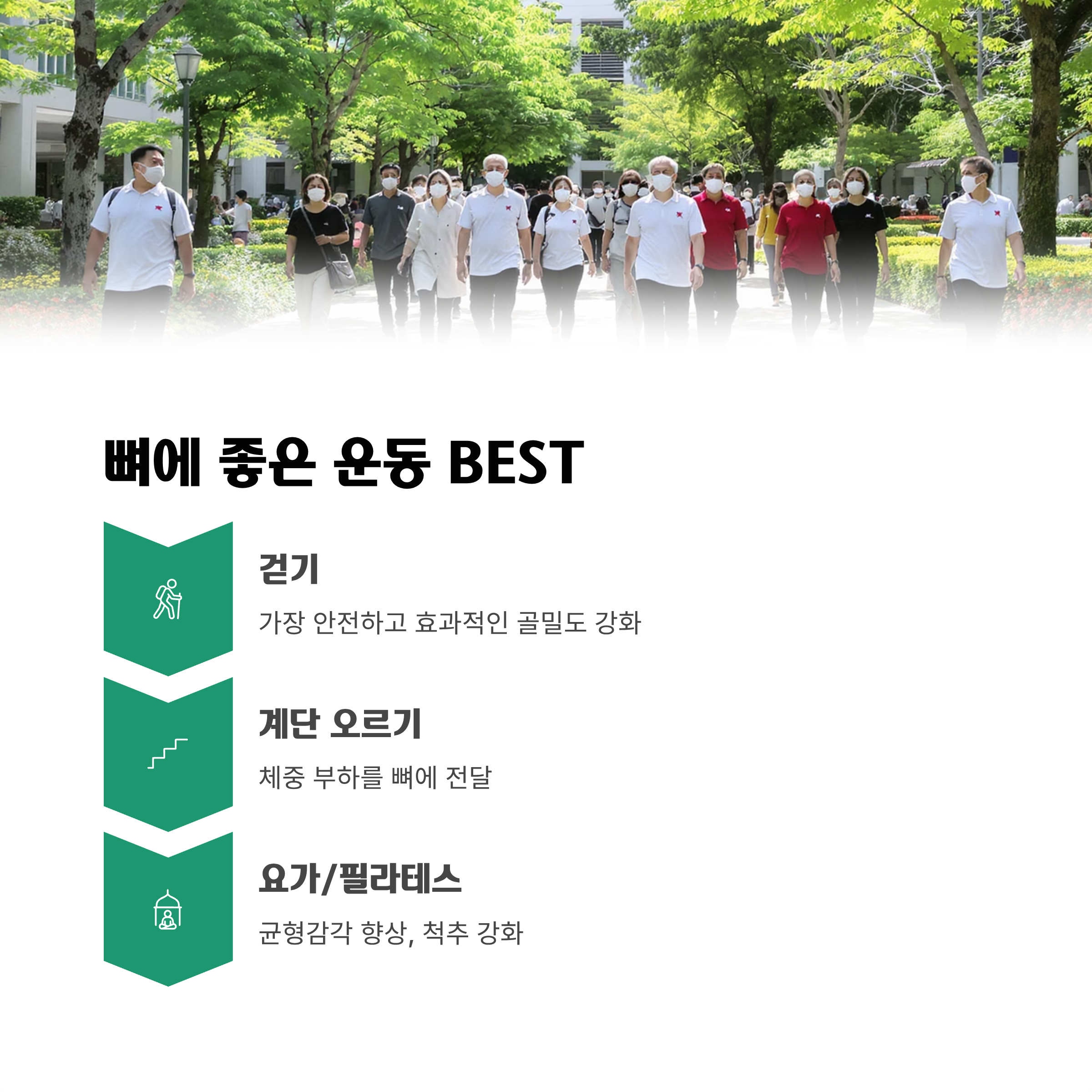 - 계단 오르기: 체중 부하를 뼈에 전달해 주는 데 탁월