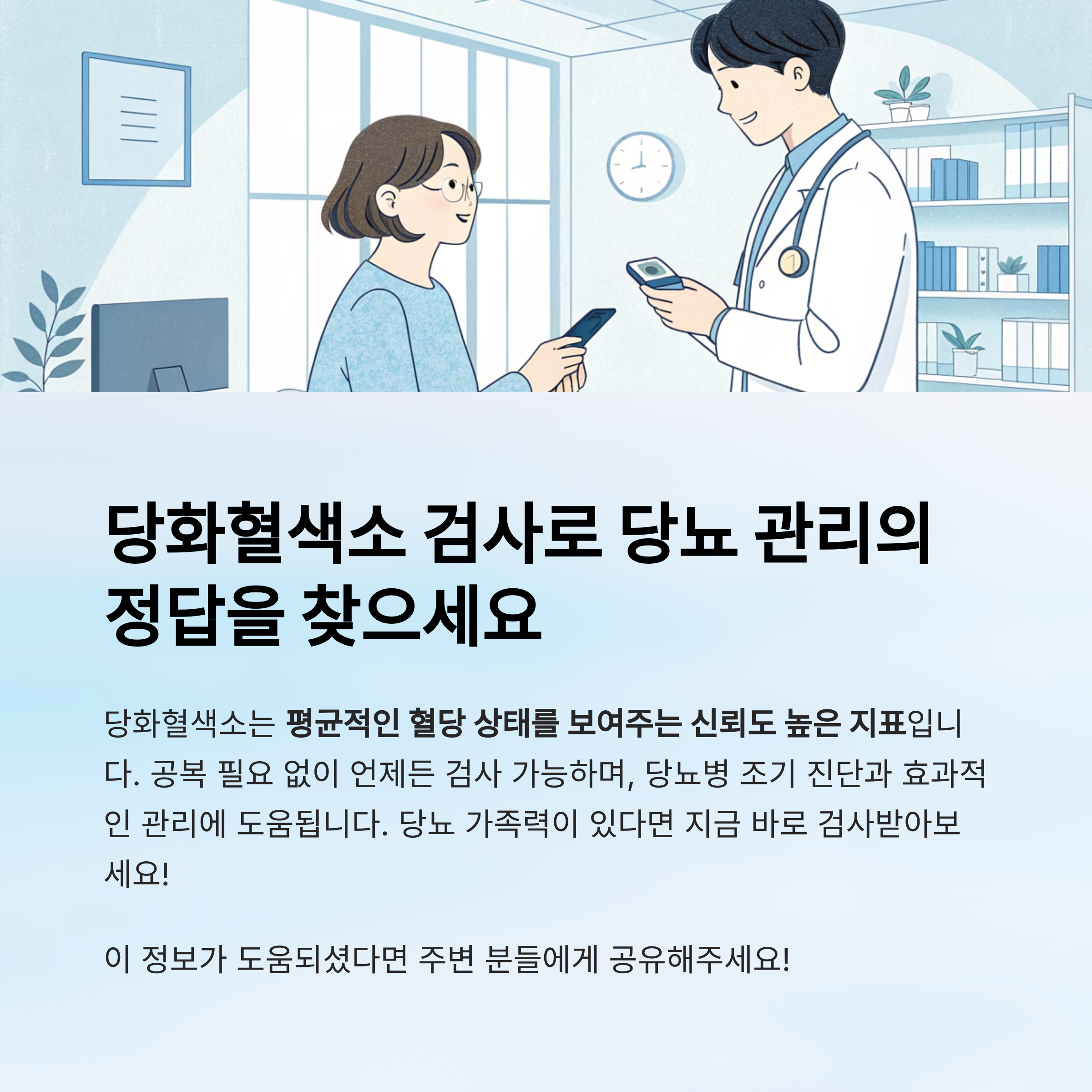 지금 바로 가까운 병의원에서 당화혈색소 검사를 받아보시길 권장드립니다.