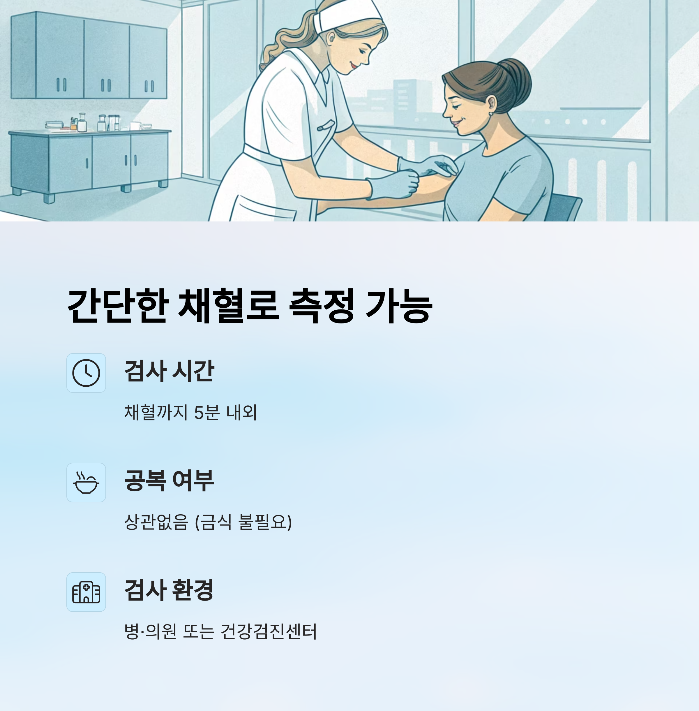 - 검사 시간: 채혈까지 5분 내외