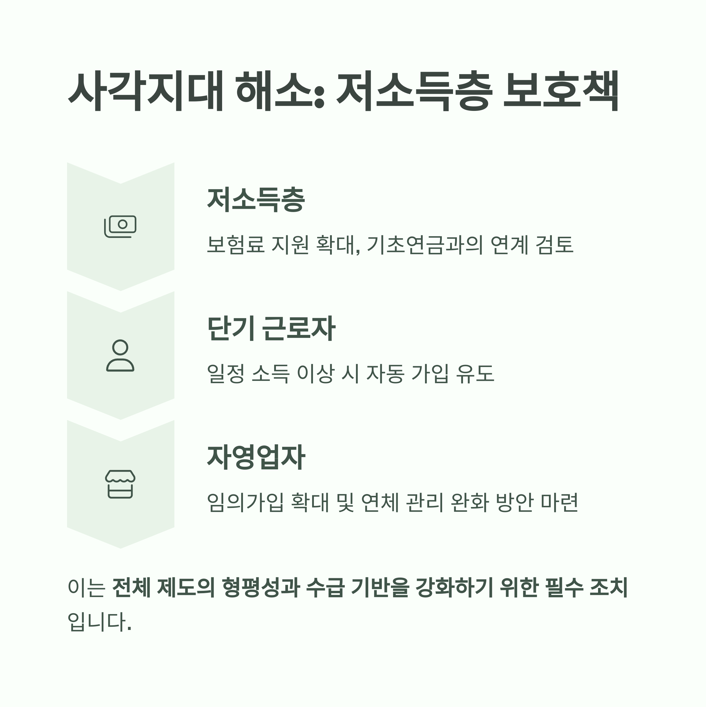 이는 단지 복지 확대 차원이 아니라, 전체 제도의 형평성과 수급 기반을 강화하기 위한 필수 조치로 볼 수 있습니다.