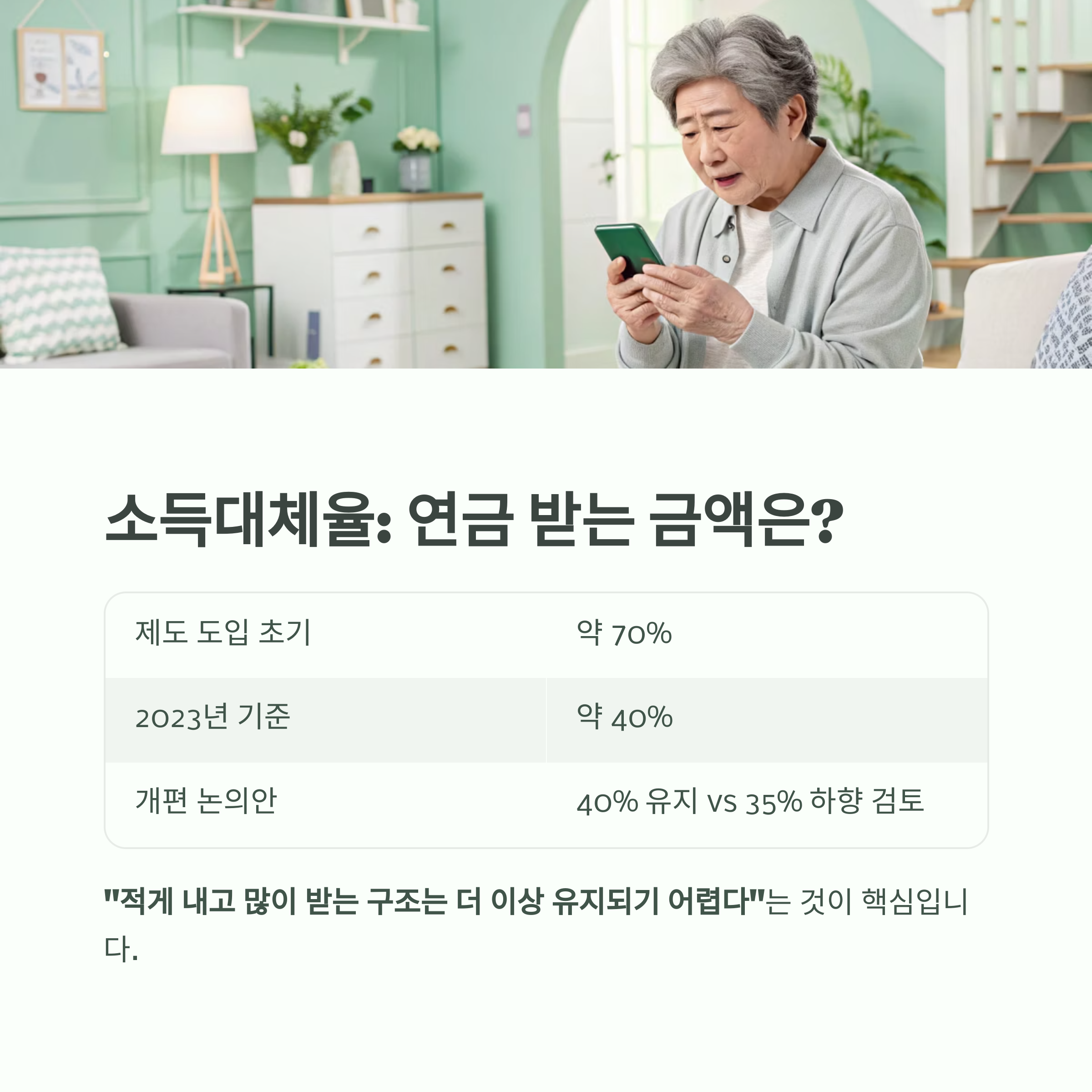 즉, **“적게 내고 많이 받는 구조는 더 이상 유지되기 어렵다”**는 것이 핵심입니다.