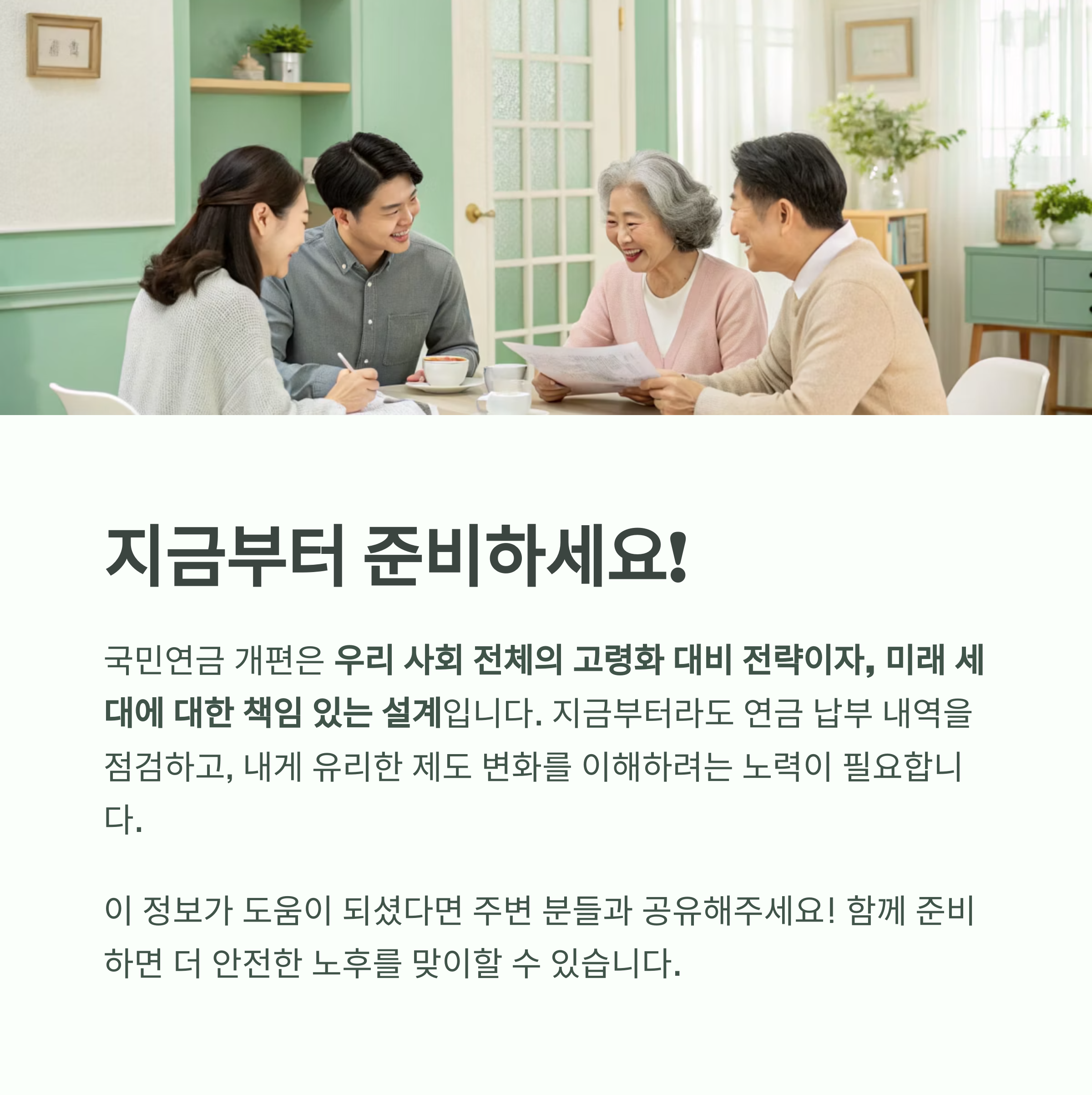 우리 사회 전체의 고령화 대비 전략이자, 미래 세대에 대한 책임 있는 설계입니다.