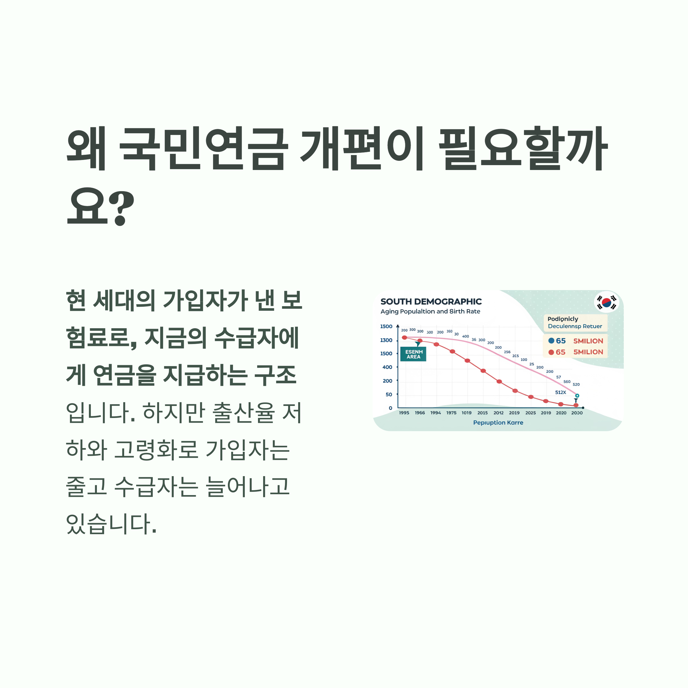 먼저, 지금의 국민연금 제도가 개편되어야 하는 이유를 짚어보겠습니다.