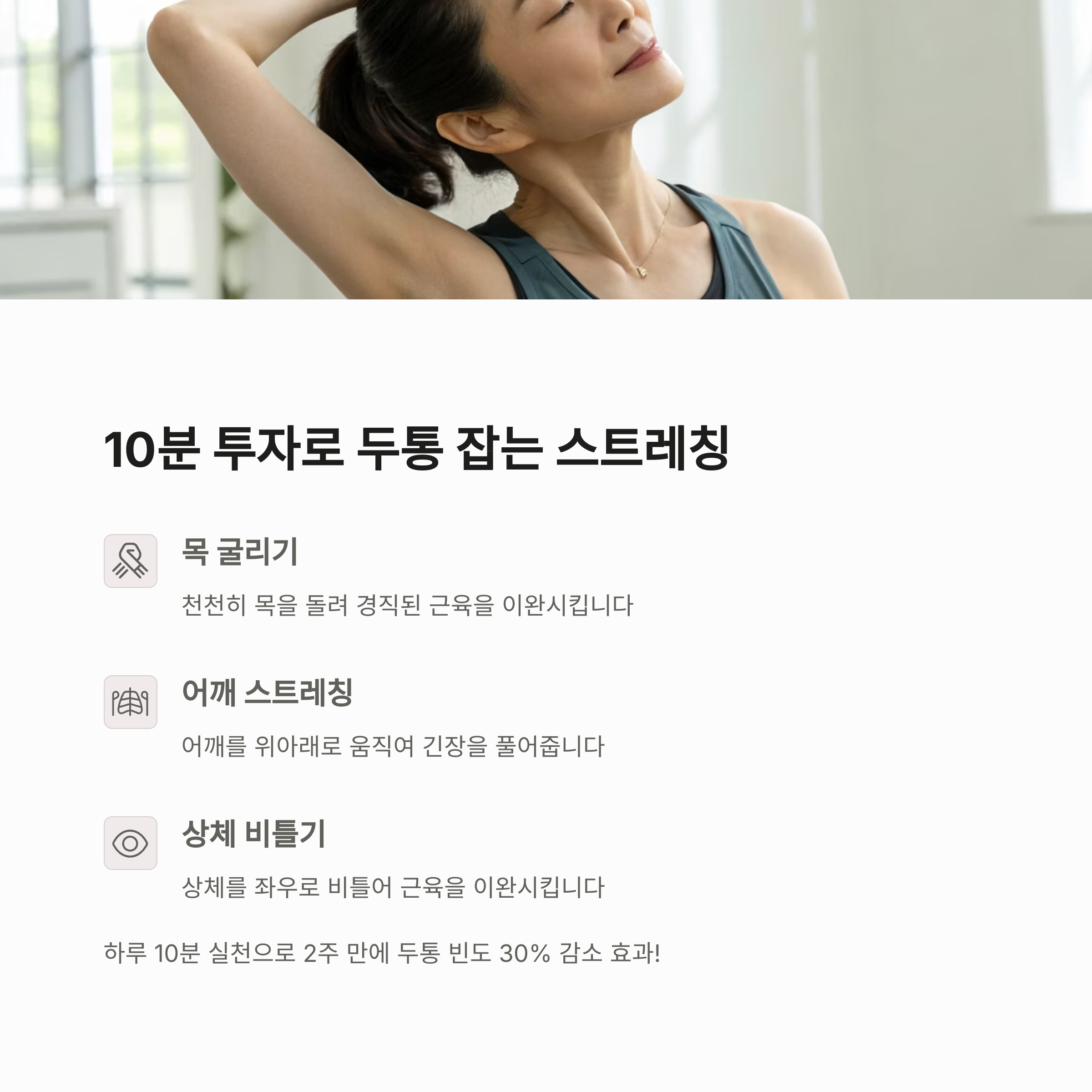 Q 매일 10분 스트레칭만으로 두통을 완화할 수 있나요?