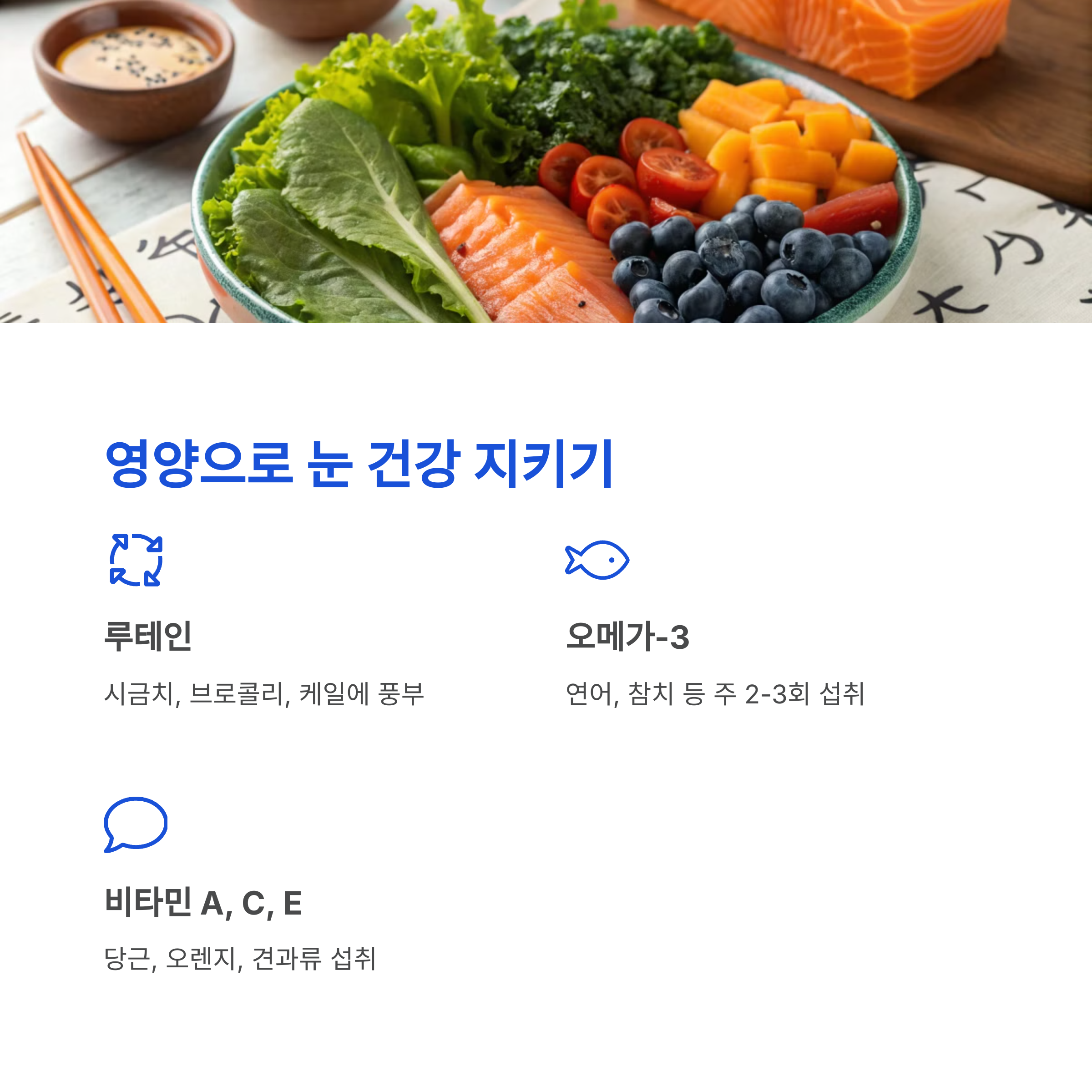 영양제도 좋지만, 자연식품에서 얻는 게 더 오래가고 안정적이에요. 특히 눈에 좋은 항산화 성분과 비타민이 풍부한 식품들을 꾸준히 섭취해 보세요!