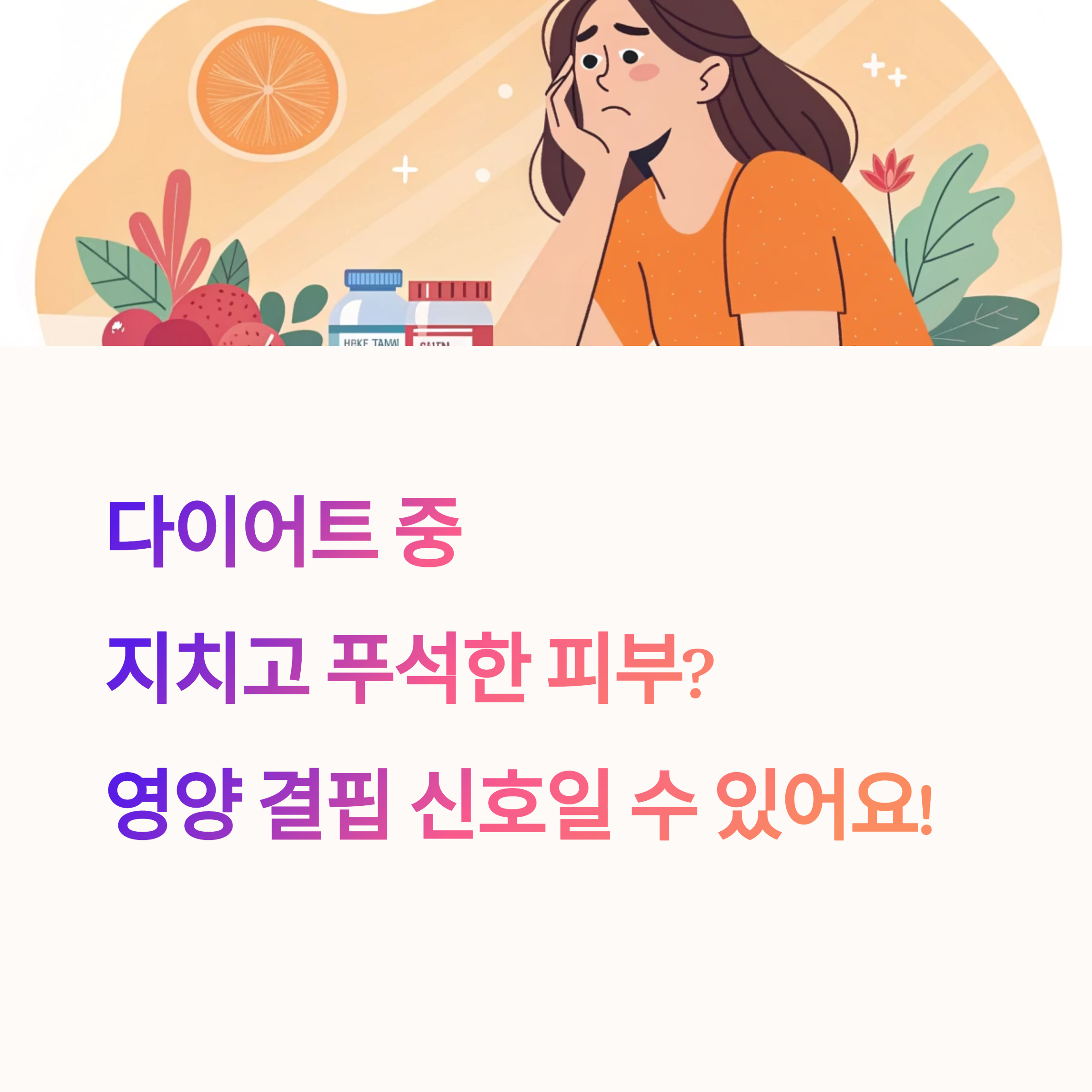 살은 빼고 싶은데 자꾸 지치고, 머리도 멍하고, 피부까지 푸석해진다면? 그건 당신의 몸이 보내는 ‘영양 결핍’ 신호일 수 있어요!