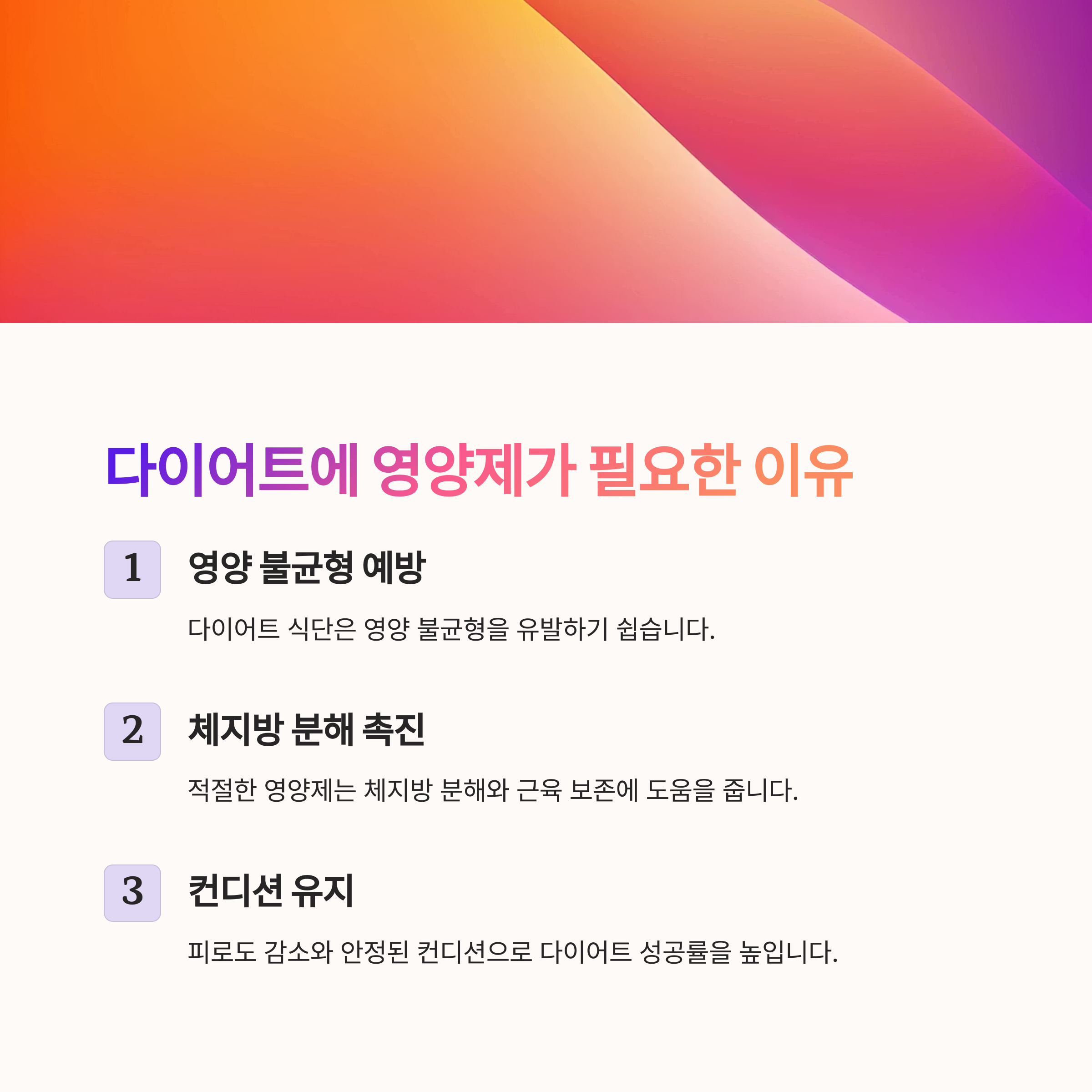 무엇보다 다이어트를 성공하려면 오래가야 하잖아요? 그럴 땐 몸의 기초 체력을 받쳐주는 ‘영양 조력자’가 절대적으로 필요합니다.