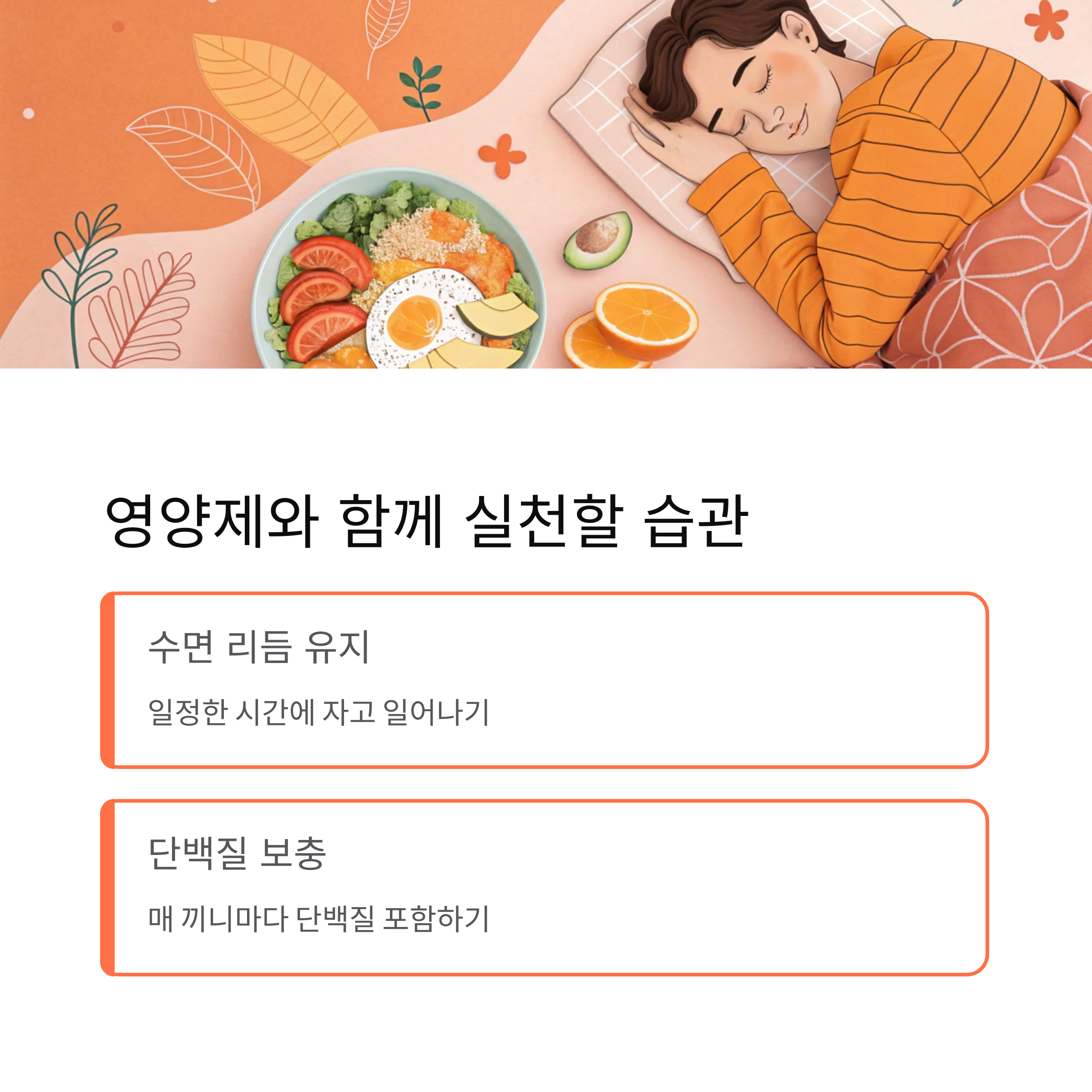 영양제는 보조제일뿐, 생활습관이 바뀌지 않으면 효과도 제한적이에요. 정체기를 극복하려면 다음과 같은 습관들을 함께 실천해 보세요.