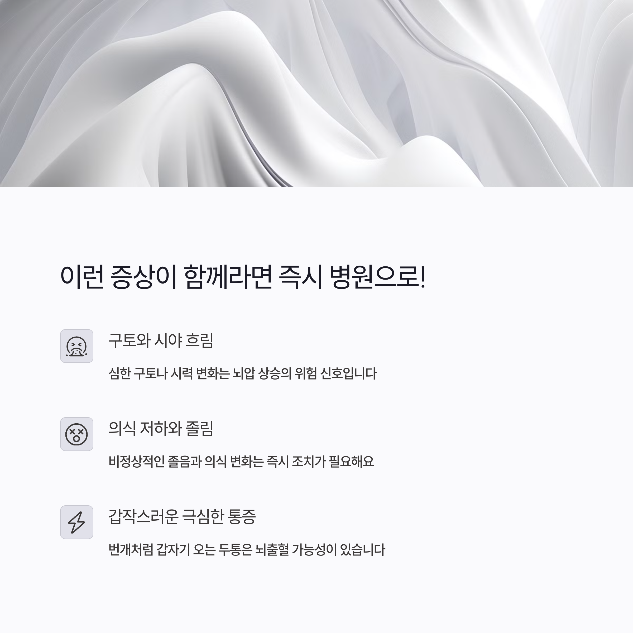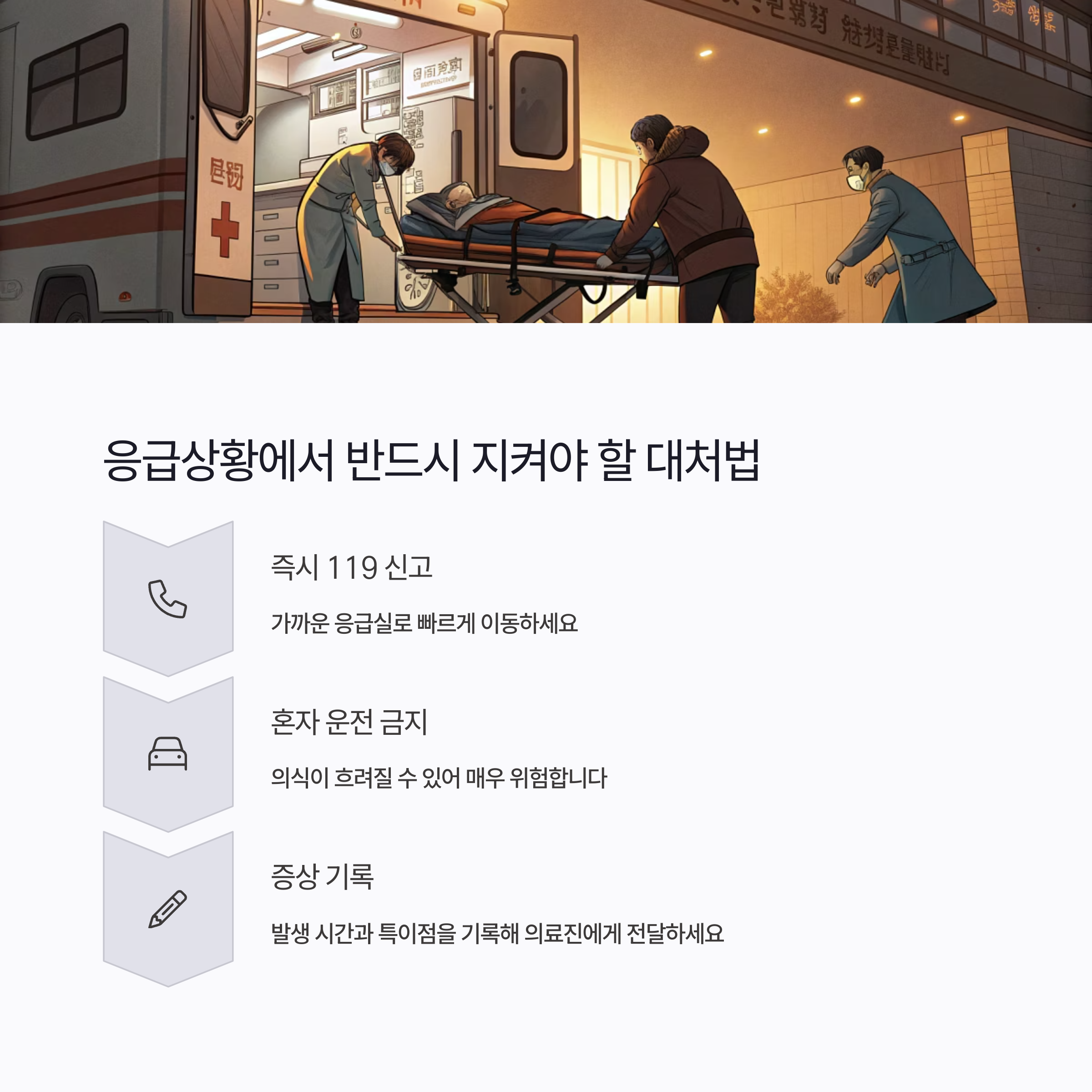 | 의식 혼미 또는 응답 지연 | 곧바로 응급실 방문 |