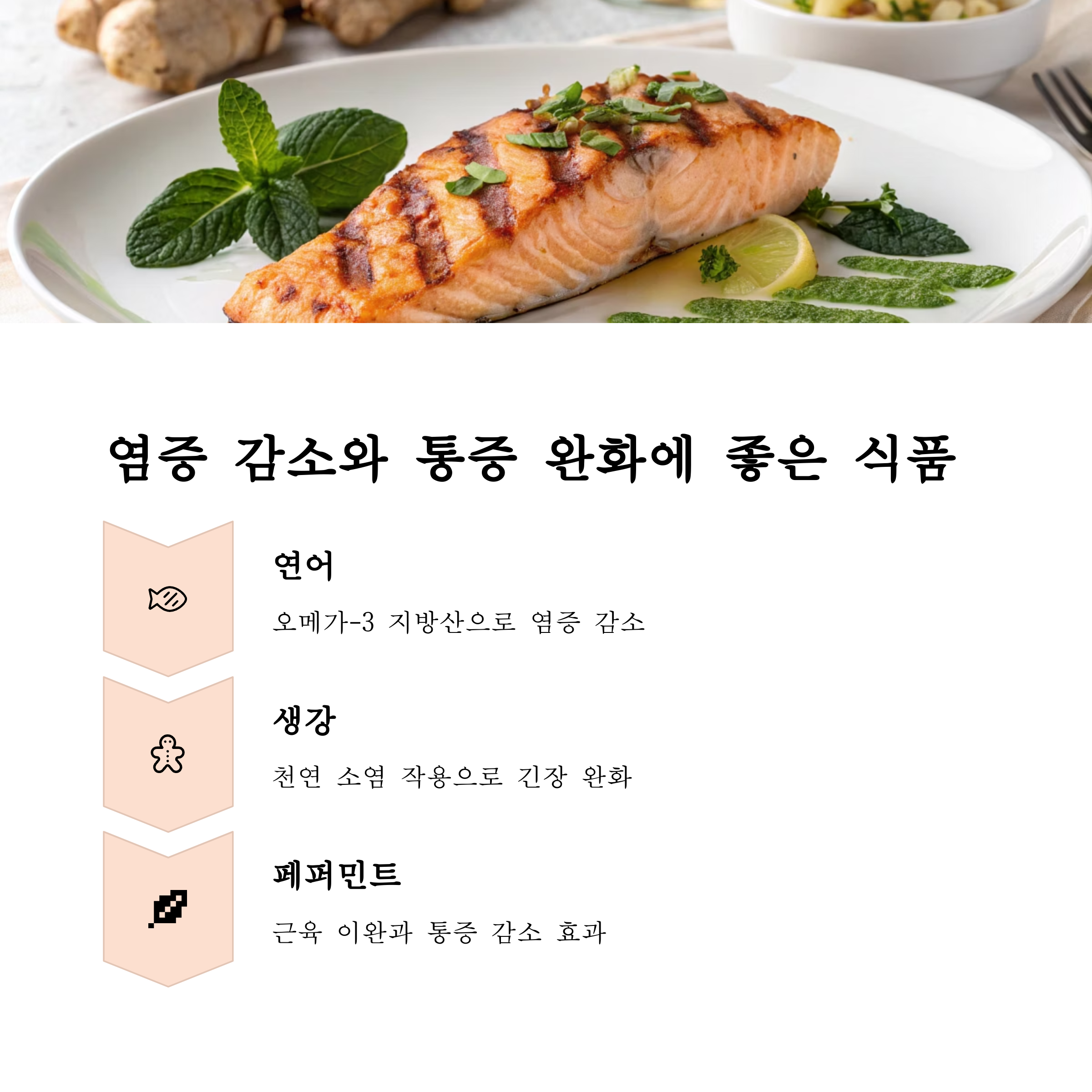 • 연어 – 주 2회 섭취로 두통 감소 효과 있음
