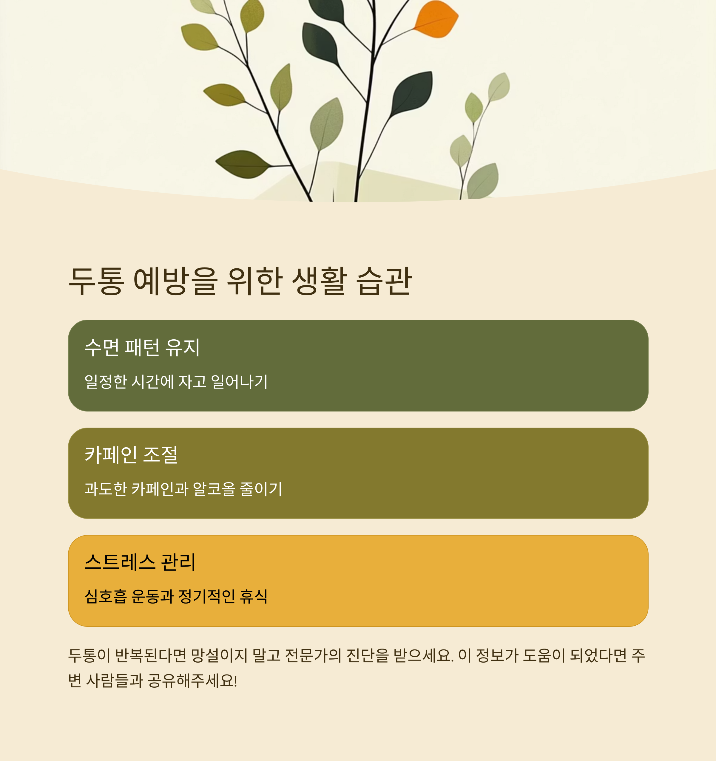 두통이라는 증상이 의외로 다양한 원인을 가질 수 있다는 사실, 오늘 글을 통해 새삼 느끼셨을 거라 생각합니다. 단순히 진통제로 넘기기엔 위험할 수 있는 순간들이 있다는 거죠. 여러분의 건강은 누구보다 소중하니까요. 앞으로 두통이 반복된다면, 망설이지 말고 전문가의 진단을 받아보세요. 나와 가족을 위한 작은 실천이 될 수 있습니다. 혹시 여러분만의 두통 극복 팁이나 경험담이 있다면 댓글로 나눠주세요. 서로에게 도움이 되는 소통, 기다리고 있을게요.