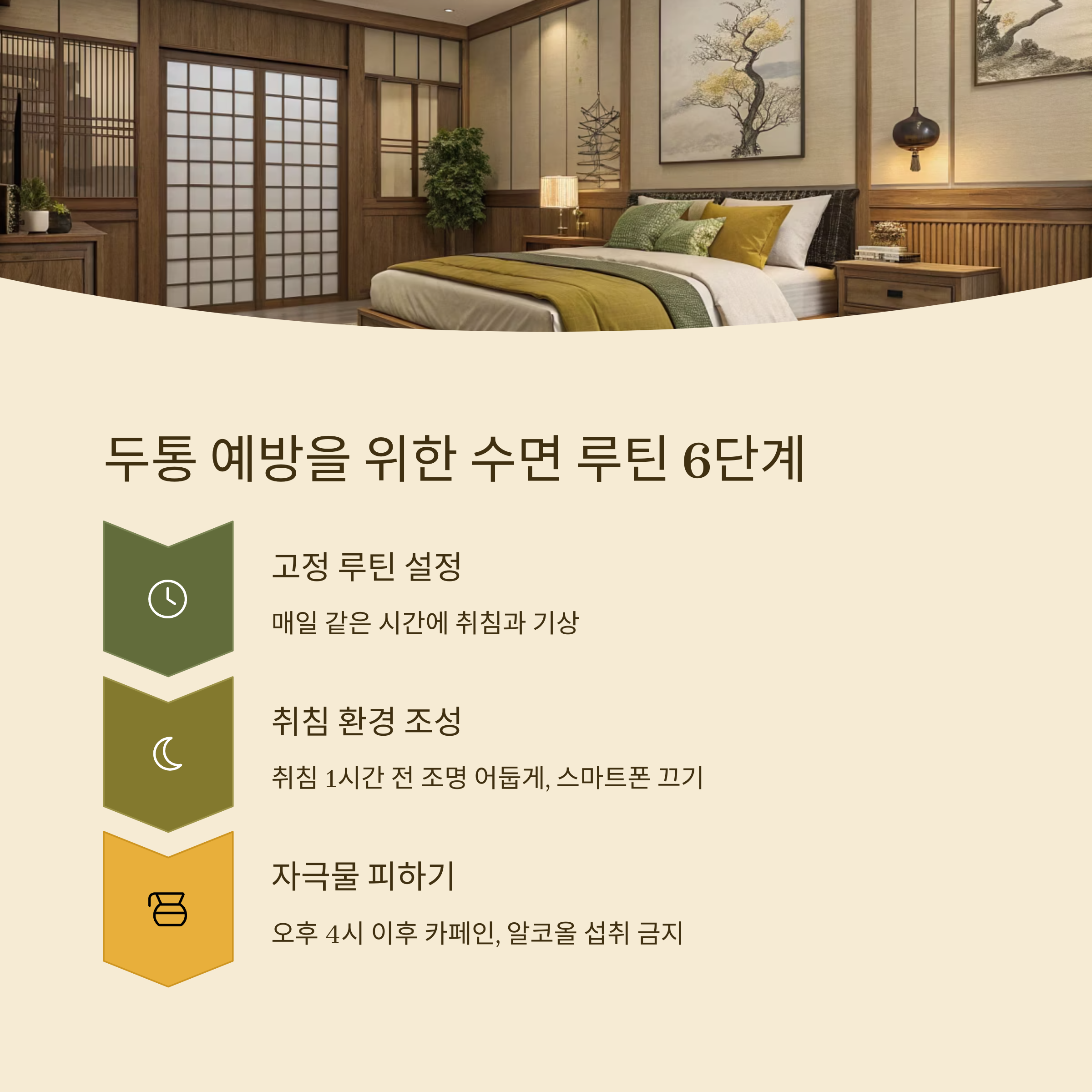 안녕하세요. 혹시 여러분도 아침에 눈을 떴을 때 이미 머리가 지끈거리는 경험, 해보신 적 있으신가요? 저는 이전에 두통으로 잠을 자도 자는 것 같지 않고, 아침마다 피곤함이 가시지 않아 고민이 많았어요. 그런데 한 의사 선생님께서 "수면 루틴을 먼저 점검해 보라"라고 하시더라고요. 그 말을 계기로 저도 매일 밤 같은 시간에 잠들고, 디지털 기기를 끄고, 간단한 스트레칭을 하며 잠자리에 들기 시작했어요. 놀랍게도 2주 만에 두통 빈도가 확연히 줄어들었습니다. 오늘은 여러분과 함께 두통 예방에 효과적인 수면 루틴 만드는 방법을 6단계로 나누어 자세히 이야기 나눠보려고 해요. 따라 하기 어렵지 않으니 꼭 한번 실천해 보시길 권합니다.