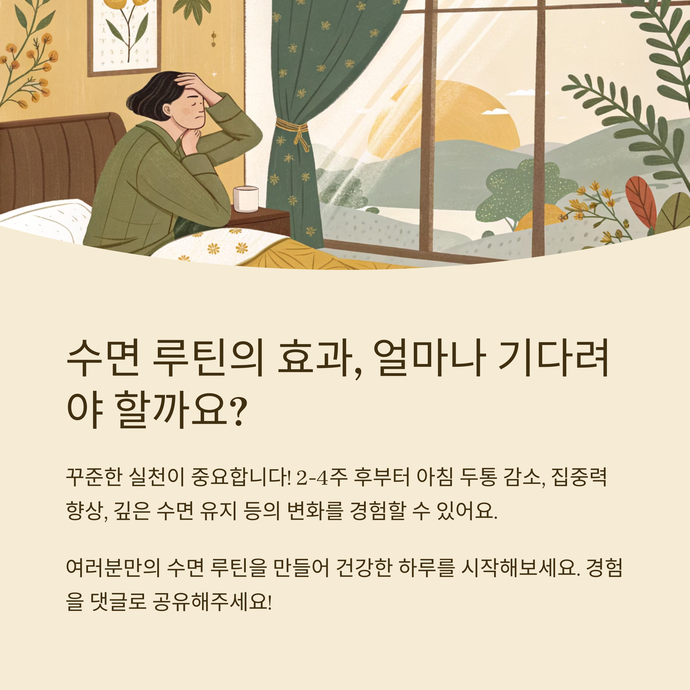 많은 분들이 "수면 루틴, 진짜 효과 있을까?" 하고 의심하시곤 합니다. 결론부터 말씀드리면, 예! 분명히 효과가 있습니다. 하지만 이 변화는 단기간에 느껴지기보다 2주에서 4주 정도의 꾸준한 실천 이후 서서히 나타납니다.