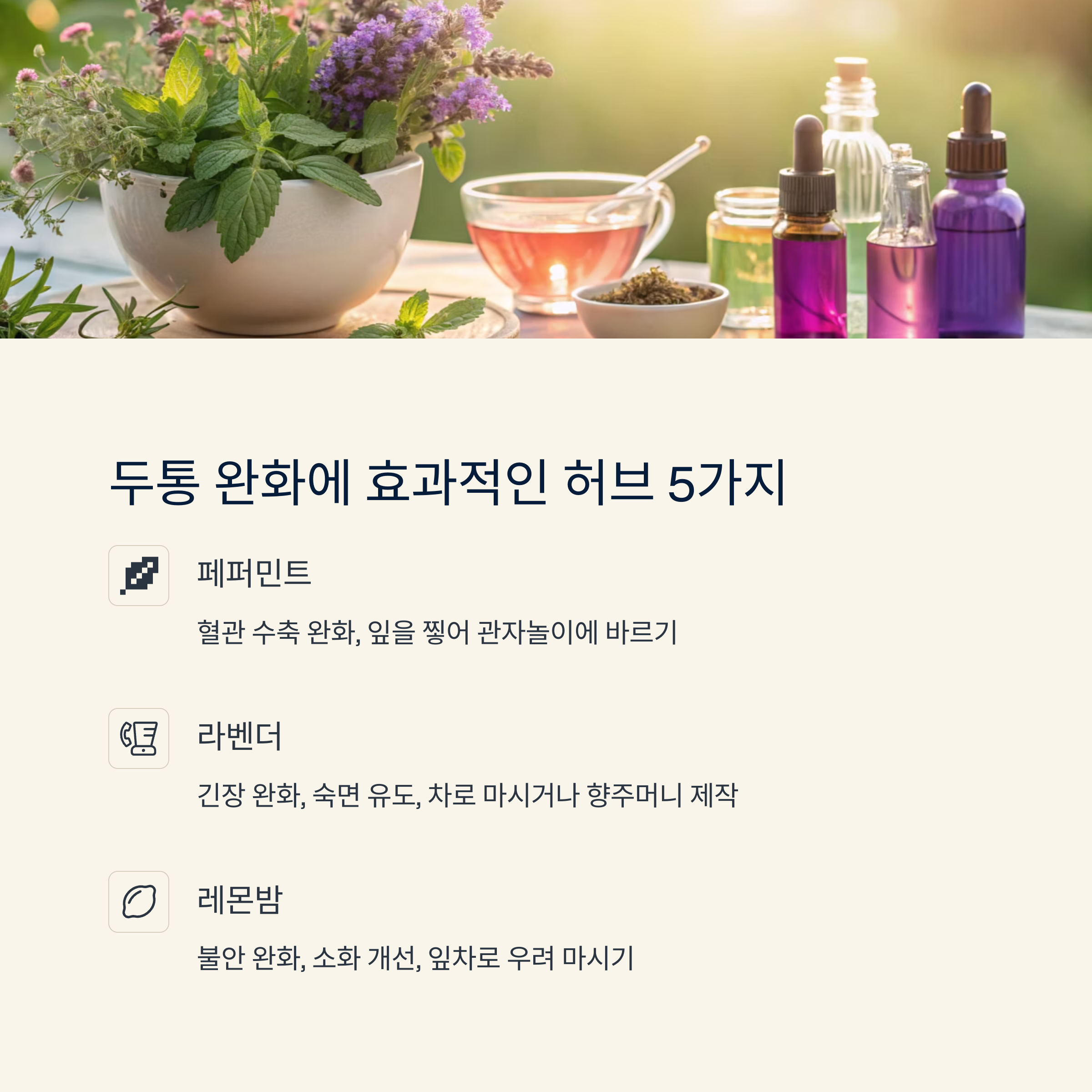 매번 약에만 의존하고 계셨다면? 자연 속에서 찾은 두통 해결법, 허브로 시작해 보세요.