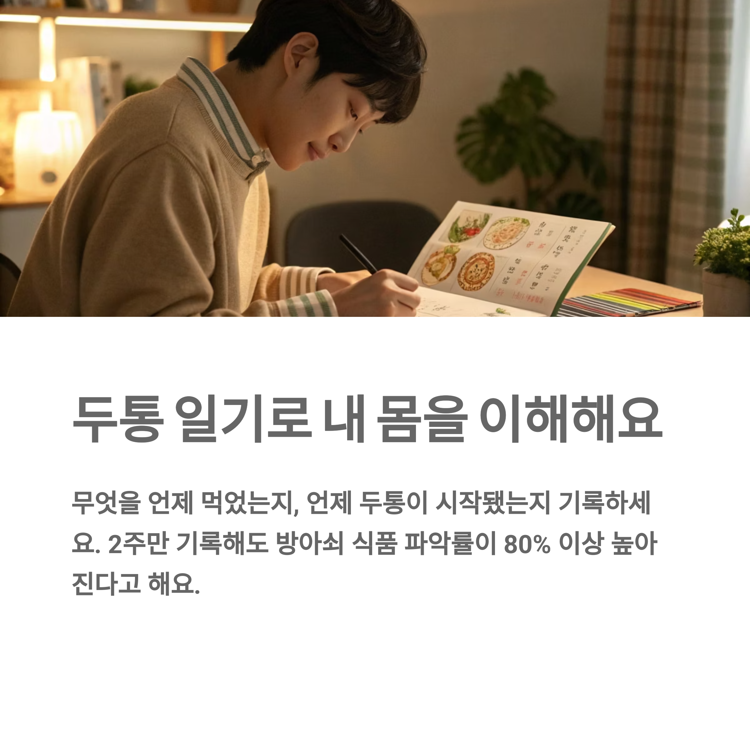 - 두통 일기 쓰기 (언제, 뭘 먹었는지 기록!)