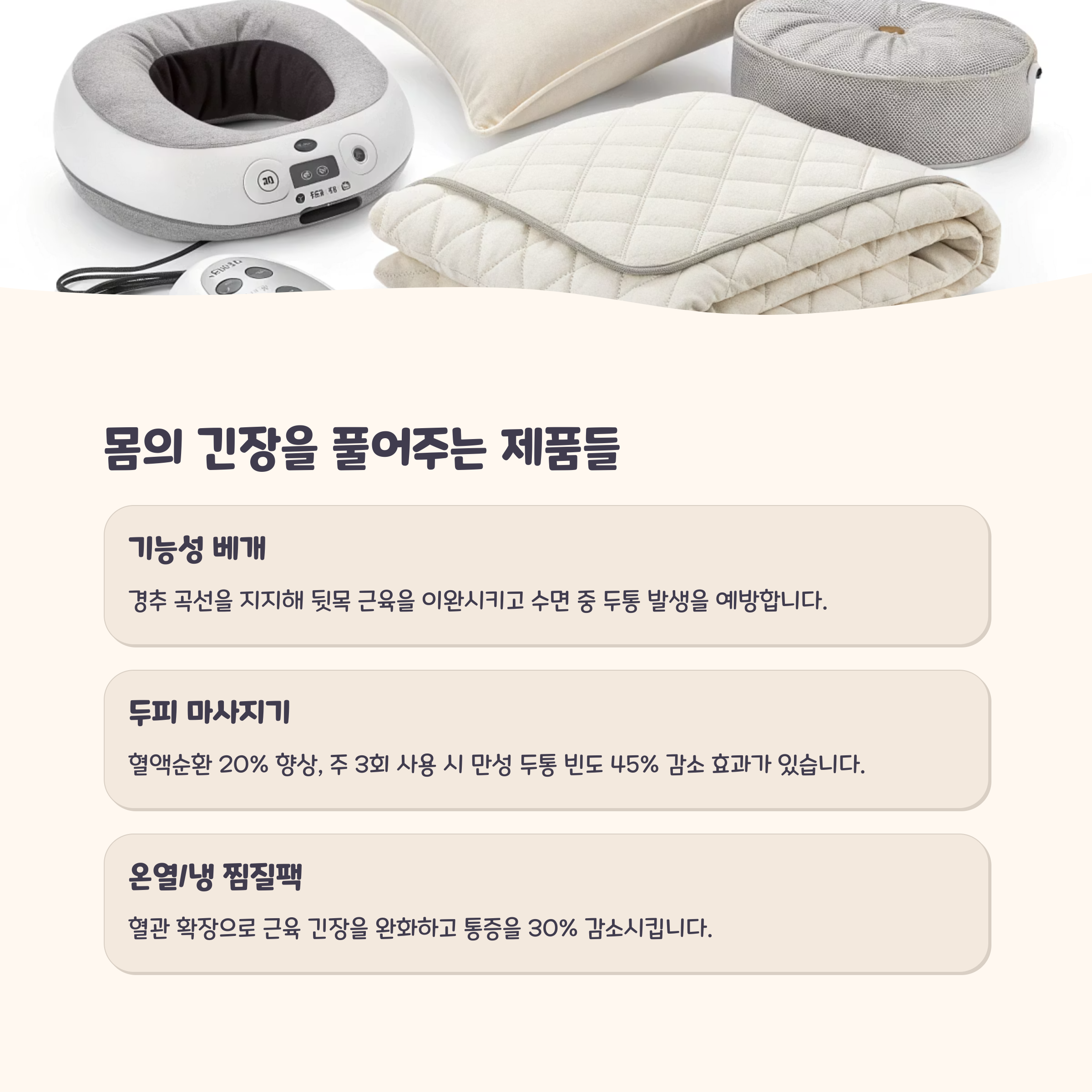 안녕하세요, 여러분! 요즘 스트레스 때문인지, 저도 툭하면 머리가 지끈지끈하더라고요. 두통약만 달고 살 수도 없고, 뭔가 부드럽고 자연스럽게 두통을 완화할 방법이 없을까 고민했어요. 그러다가 찾은 게 바로 ‘두통 완화 제품’들이에요. 베개, 냉찜질팩, 마사지 기구처럼 간단하지만 효과 좋은 것들이 꽤 많더라고요. 오늘은 제가 직접 써보고, 주변에서도 평판 좋은 아이템들을 모아 소개해드릴게요. 아픈 머리, 우리 스스로 지켜야죠!