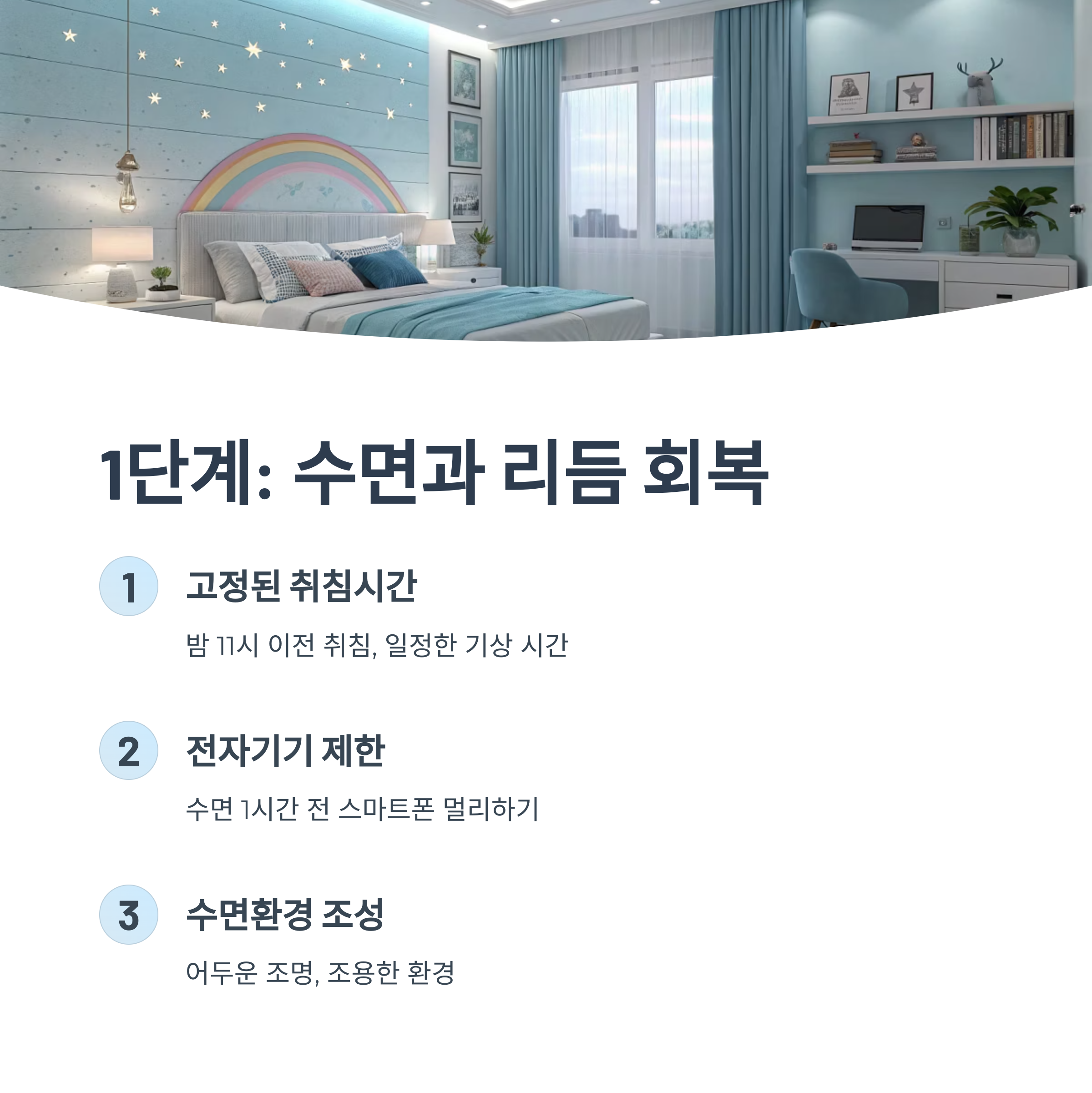 | 전자기기 사용 제한 | 수면 1시간 전 스마트폰 멀리하기 |