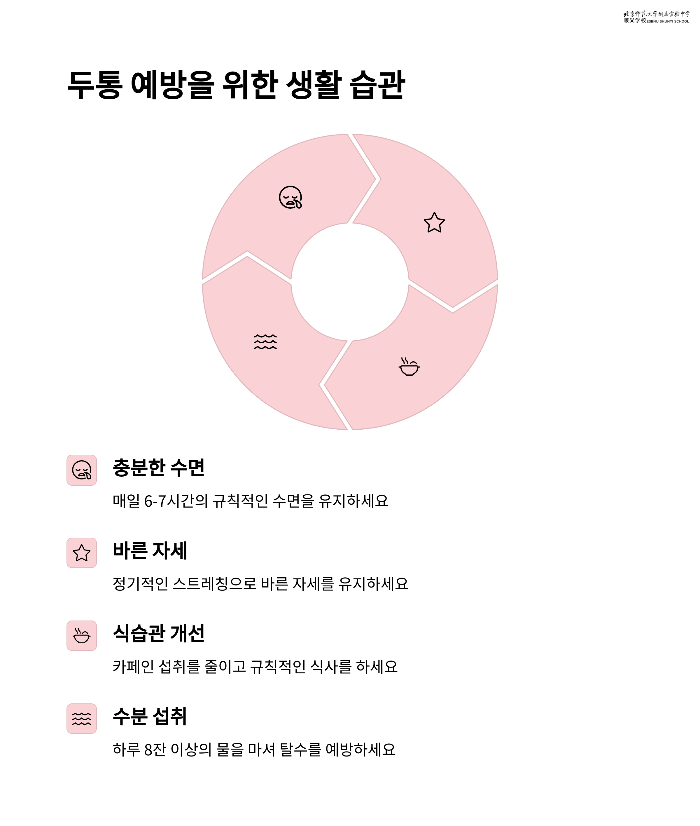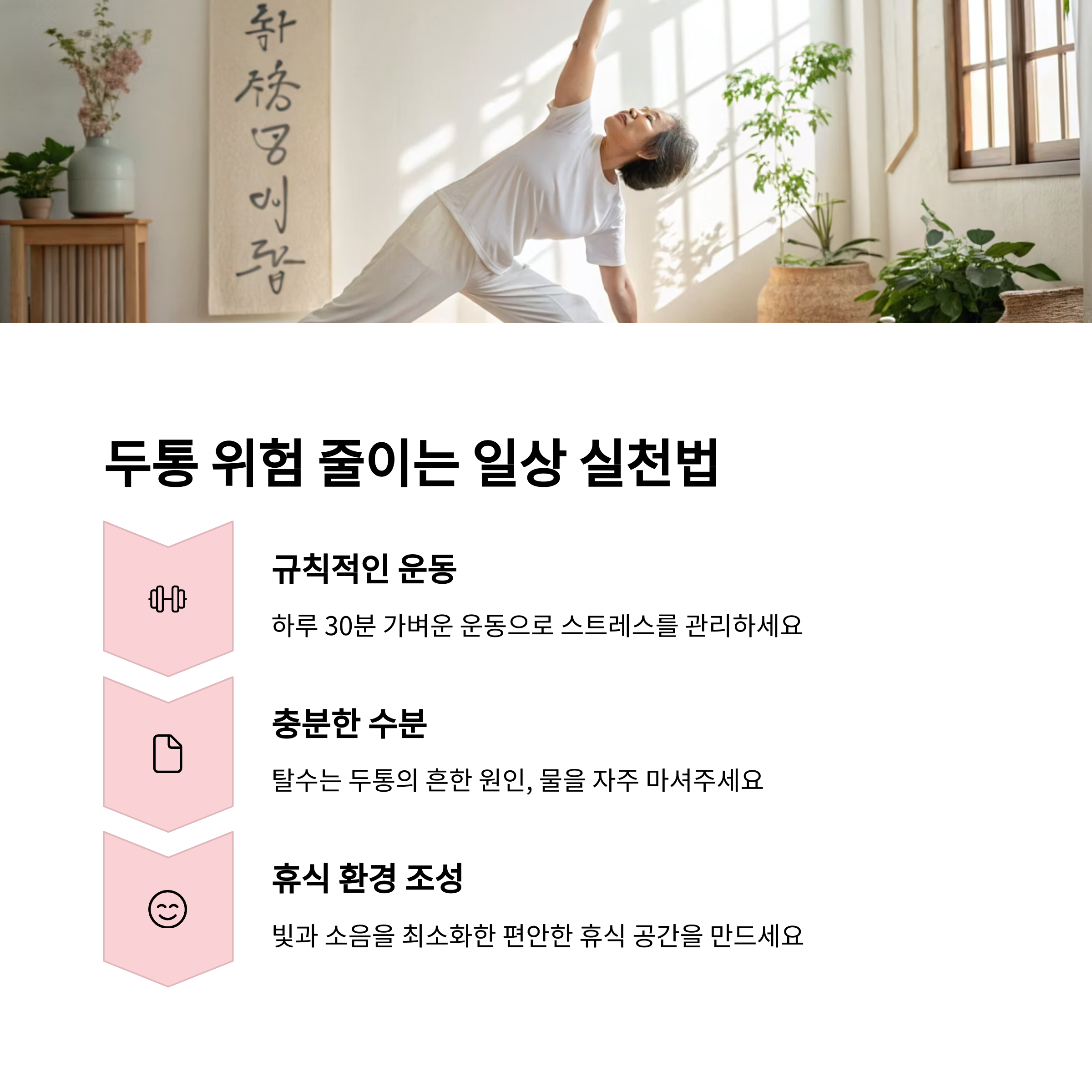 두통을 줄이기 위해선 생활 속 작은 변화가 정말 중요합니다. 무리한 의지보다는 실천 가능한 습관부터 하나씩 시작해 보세요!