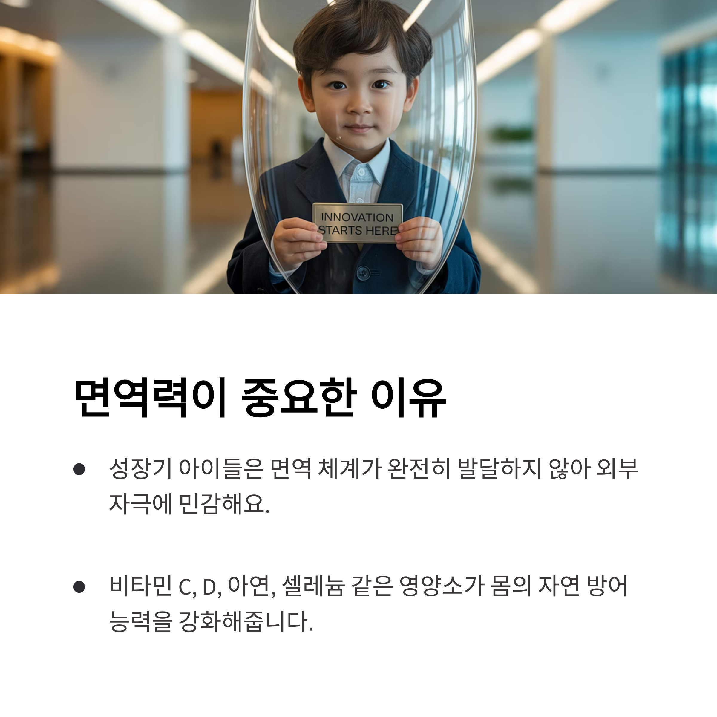 면역력은 우리 몸이 질병이나 바이러스, 세균과 싸우는 힘이에요. 특히 성장기 아이들은 면역 체계가 아직 완전히 발달하지 않았기 때문에 외부 자극에 더 민감하죠. 그래서 평소에 면역력을 높이는 음식을 꾸준히 섭취하는 것이 중요해요. 식사를 통해 비타민 C, 비타민 D, 아연, 셀레늄 같은 영양소를 충분히 공급받으면, 몸의 자연 방어 능력이 강화돼 감염병을 예방하는 데 큰 도움이 됩니다.