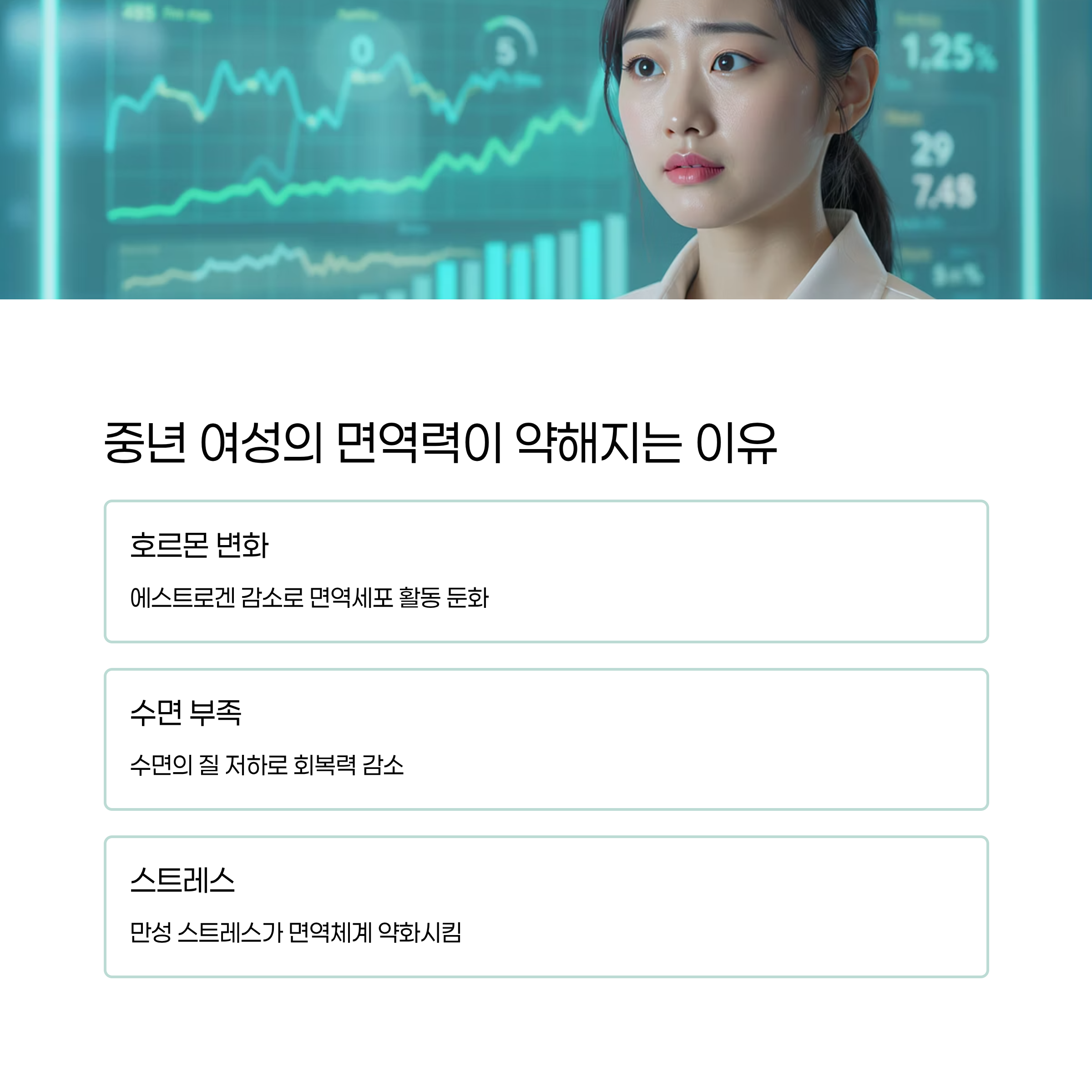 네, 특히 여성은 40대 이후 호르몬 변화로 인해 면역력이 더 급격히 낮아질 수 있습니다. 하지만 생활습관으로 충분히 강화할 수 있어요.