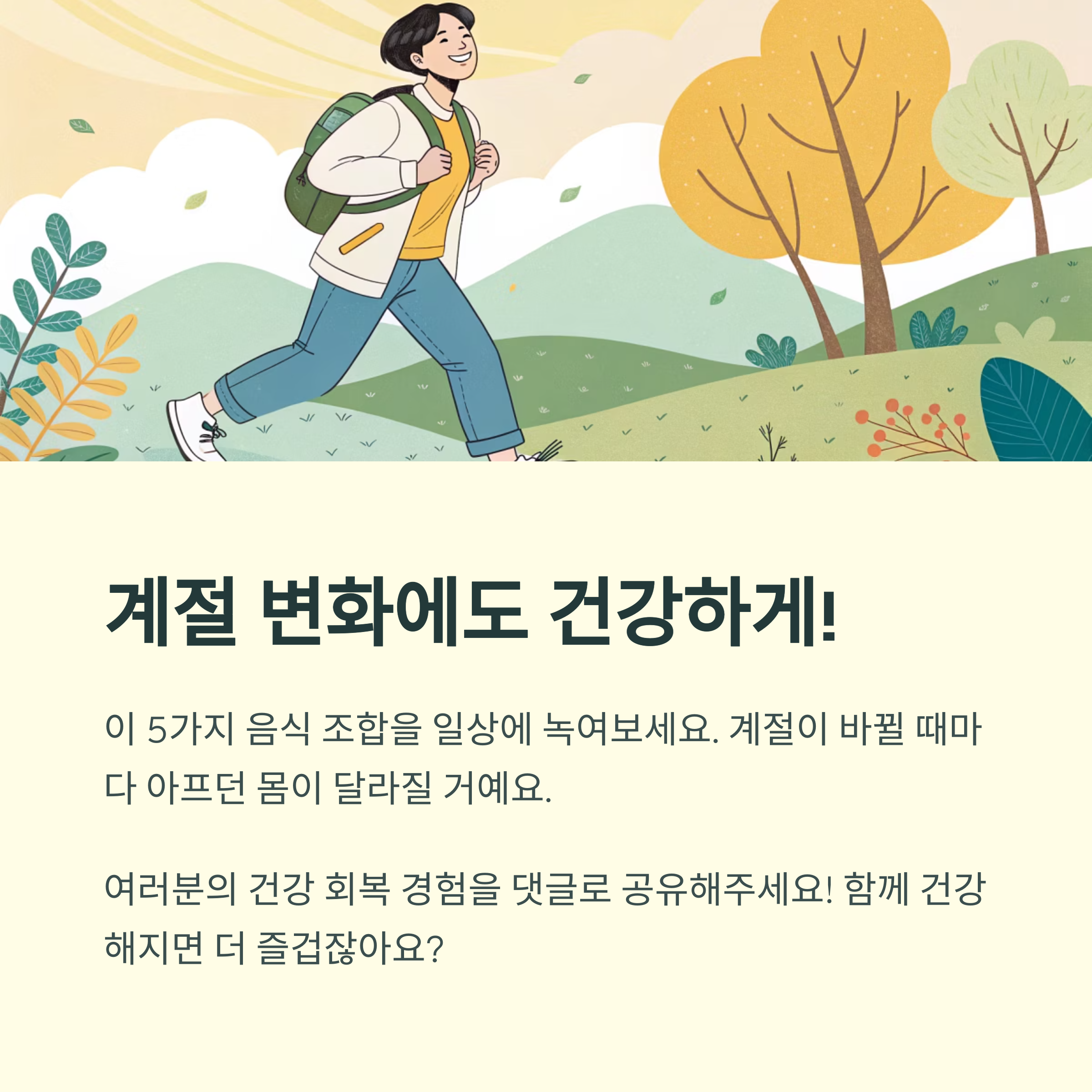 요즘같이 피로가 쌓이고 기운 없을 때, 복잡한 건강식보다 간단하고 실천 가능한 음식 조합이 더 큰 효과를 주는 경우가 많습니다. 오늘 소개한 다섯 가지 조합, 부담 없이 일상에 녹여보세요. 저는 이 조합들 덕분에 계절 바뀔 때마다 아프던 몸이 정말 달라졌어요. 만약 여러분도 비슷한 고민을 하고 계셨다면, 이번 기회에 하나씩 실천해보시길 진심으로 추천드려요. 효과가 느껴지면 댓글로도 꼭 소통해 주세요! 함께 건강해지면 더 즐겁잖아요?