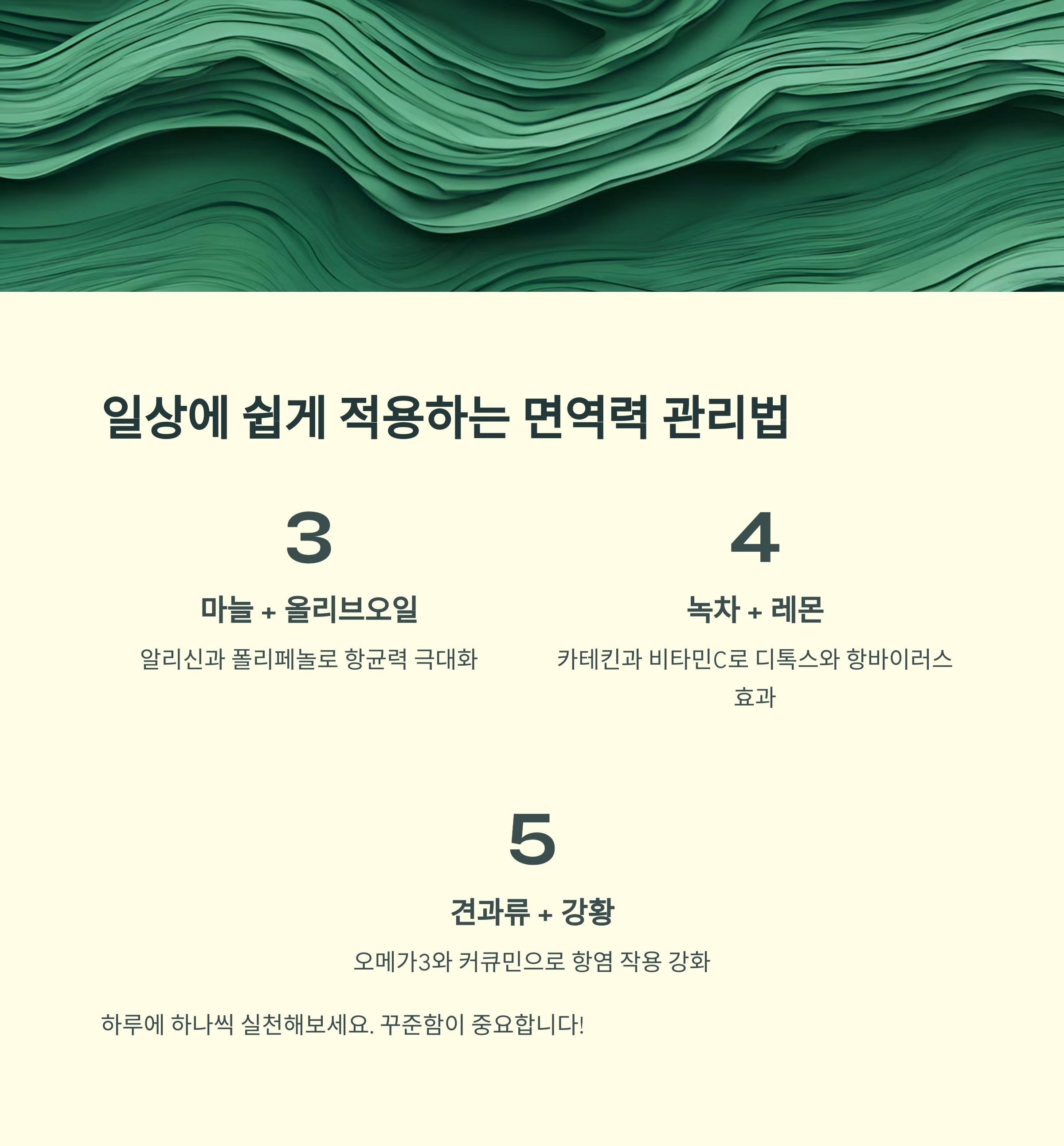 요즘 따라 몸이 무겁고 피곤하시나요? 면역력 저하를 의심해볼 때입니다. 단 5가지 조합이면 확실히 회복할 수 있어요!