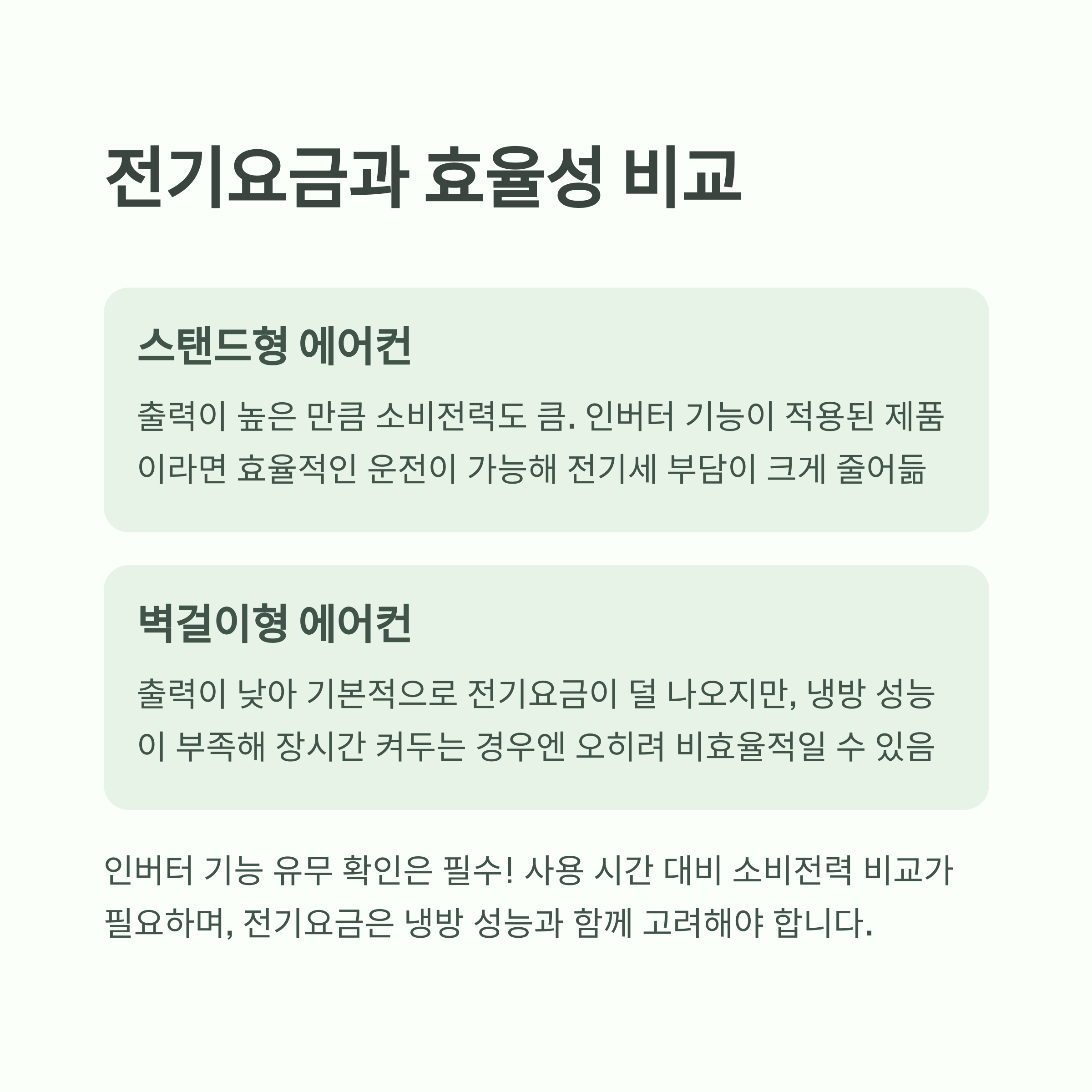 - 전기요금은 냉방 성능과 함께 고려해야
