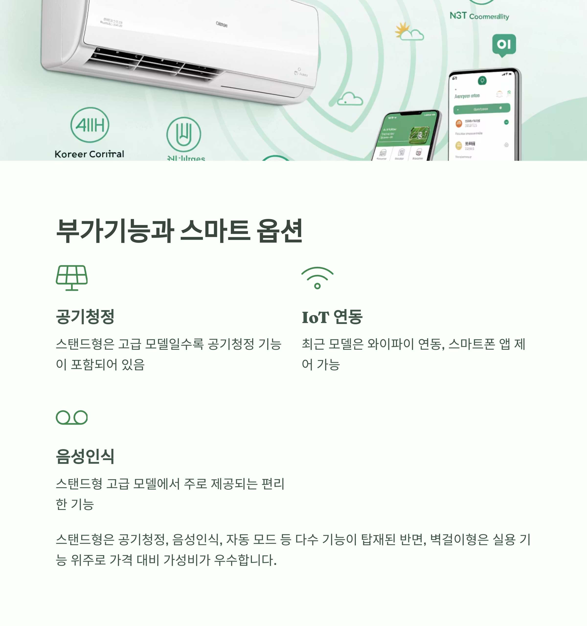 - 벽걸이형: 실용 기능 위주, 가격 대비 가성비 우수