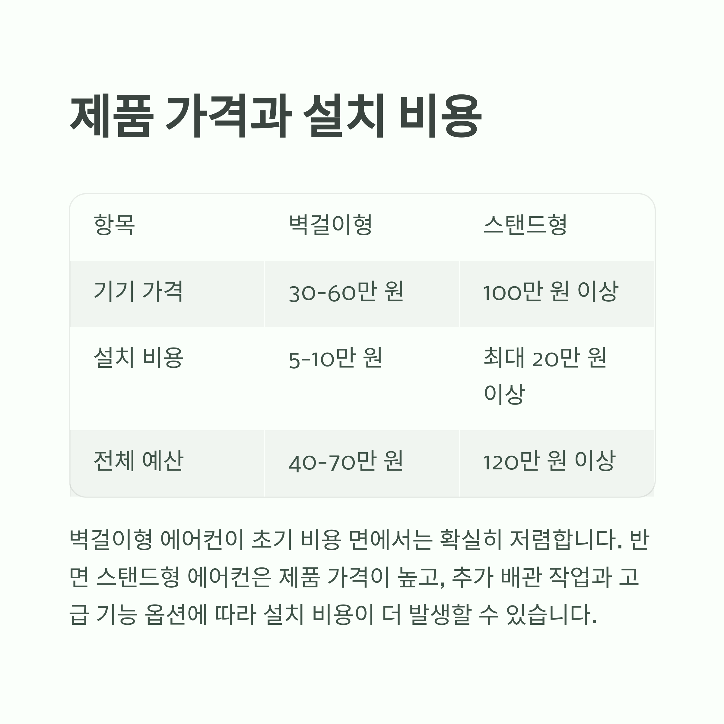 | 구분 | 스탠드형 에어컨 | 벽걸이형 에어컨 |