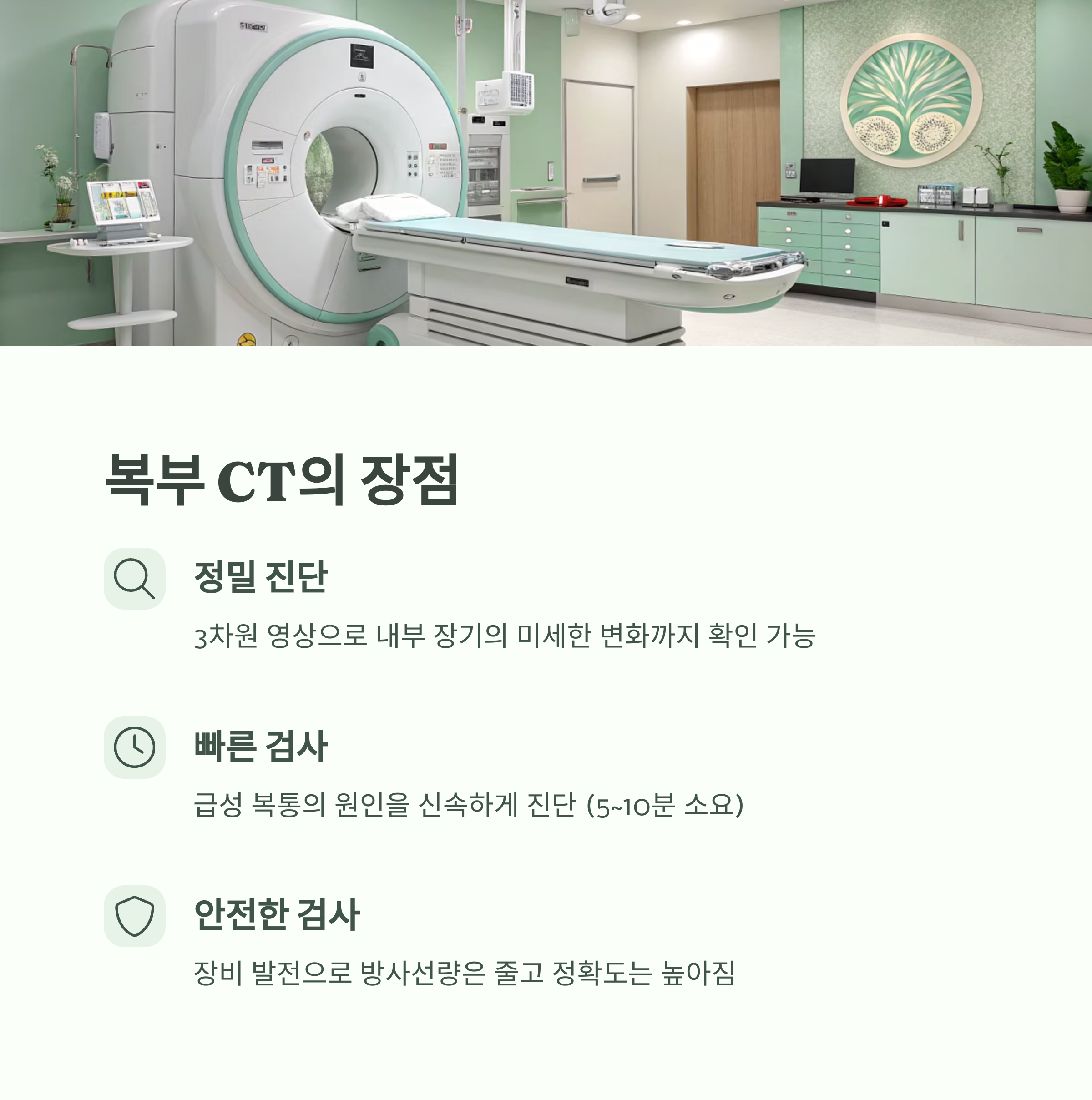 안녕하세요.  많은 환자분들 중에는 갑작스러운 복통이나 소화 이상으로 내원하셨다가 복부 CT 검사를 권유받고 당황하시는 경우가 많습니다. “정말 꼭 필요한가요?”, “부담스러운 비용은 아닐까요?”, “CT로 진짜 정확하게 나오는 건가요?” 이런 질문을 정말 자주 받습니다. 복부 CT는 단순히 '사진 한 장 찍는' 검사가 아니라, 간, 담낭, 췌장, 신장, 장, 비장 등 복부 주요 장기를 종합적으로 살펴볼 수 있는 매우 유용한 검사입니다. 오늘 이 글에서는 복부 CT로 어떤 질환을 진단할 수 있는지, 보험 여부에 따른 실질적인 비용은 어느 정도인지, 그리고 검사 전후 주의사항까지 친절하게 설명드리겠습니다. 걱정 마시고 끝까지 읽어주세요.
