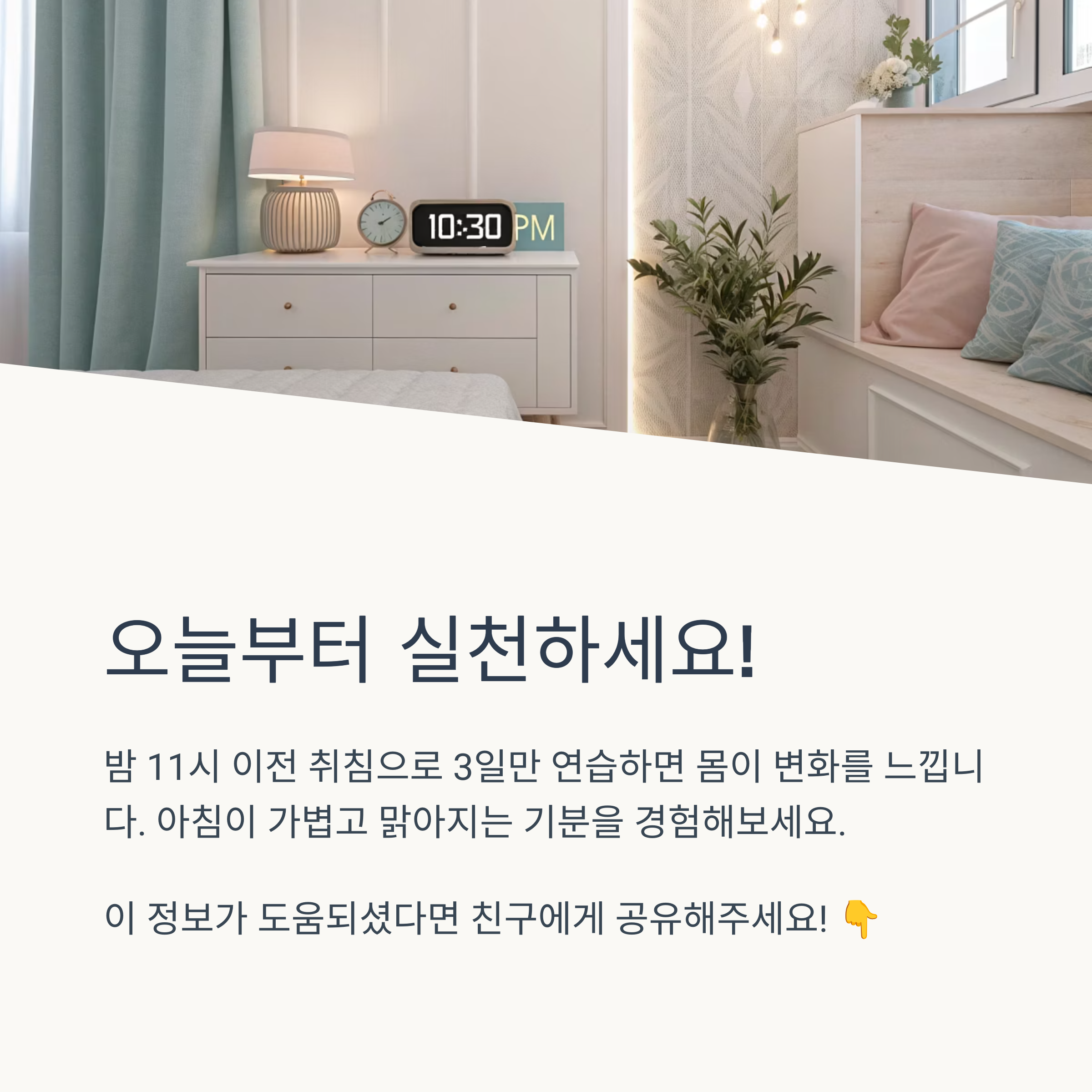 잠을 아무리 오래 자도, 숙면을 취하지 못하면 다음 날 하루가 너무 힘들게 느껴지죠. 저도 불면증 때문에 고생하던 시절이 있었는데, 밤 11시 이전에 자는 습관만으로도 삶의 질이 달라졌어요. 처음엔 어렵지만, 3일만 일찍 자는 연습을 하면 몸이 그 변화를 알아차립니다. 이 글을 읽은 여러분도 오늘부터라도 ‘언제 자는가’에 조금 더 신경 써보세요. 아침이 가볍고 맑아지는 기분, 분명 경험하실 거예요.