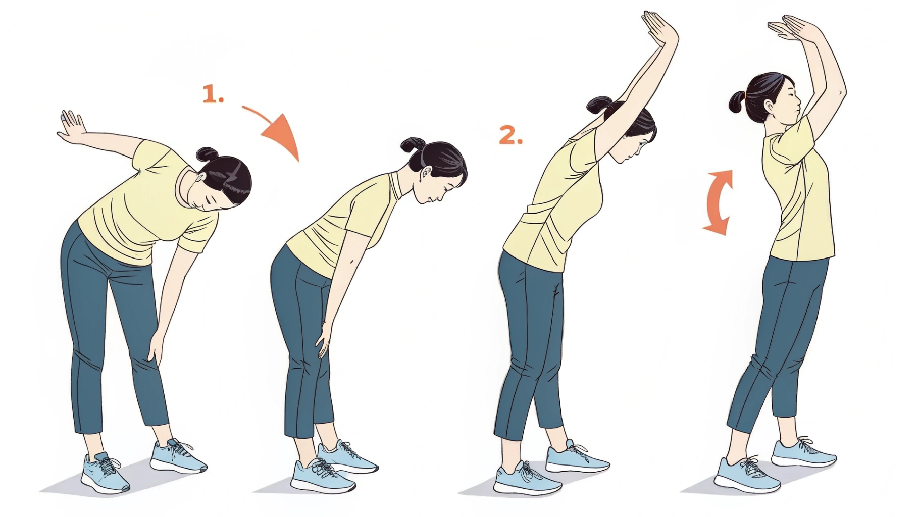 - 허리 숙이기 – 다리 벌린 채 천천히 상체 숙이기