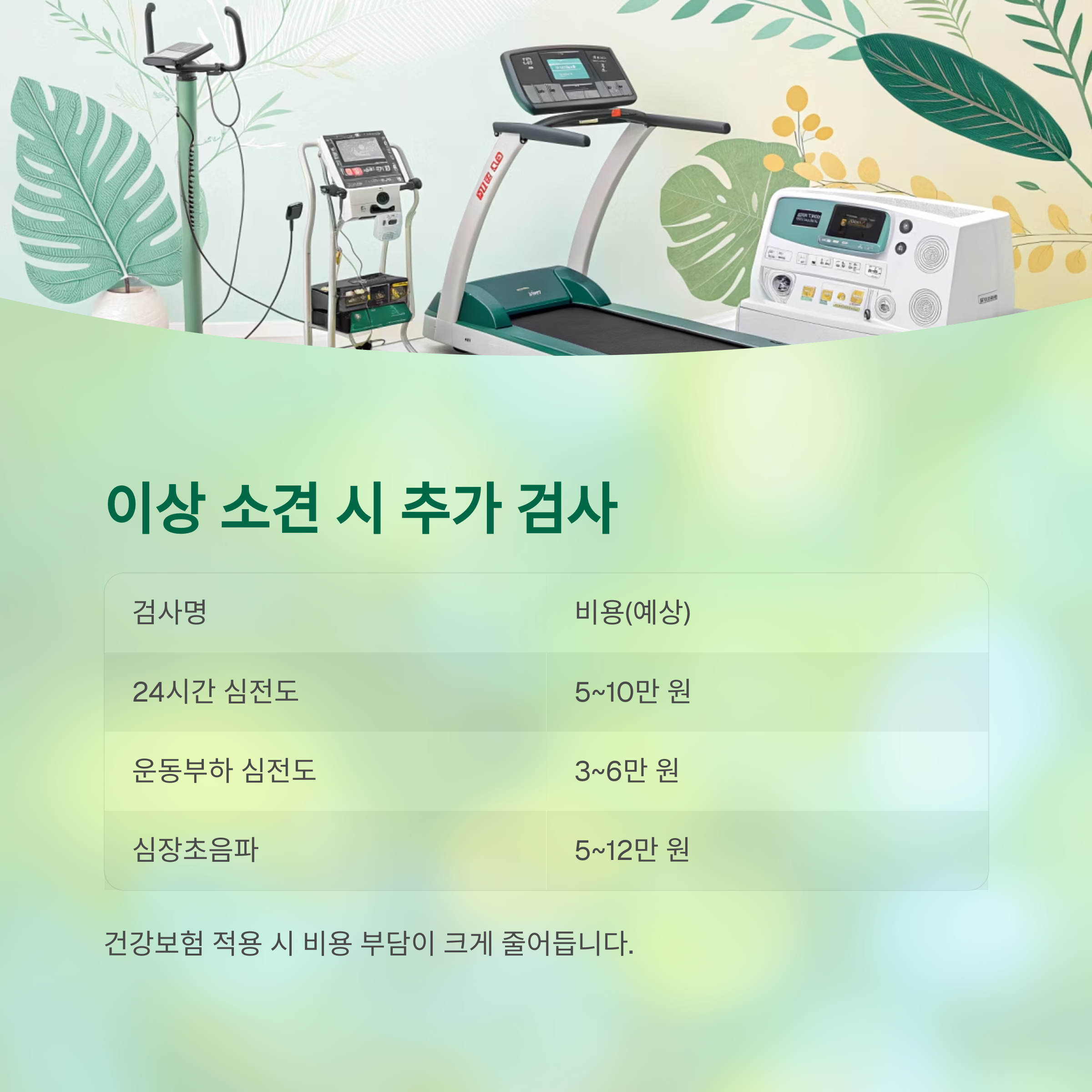 포인트: 병원에서 단독으로 심전도 검사를 요청해도 건강보험이 적용되는 경우가 많습니다.