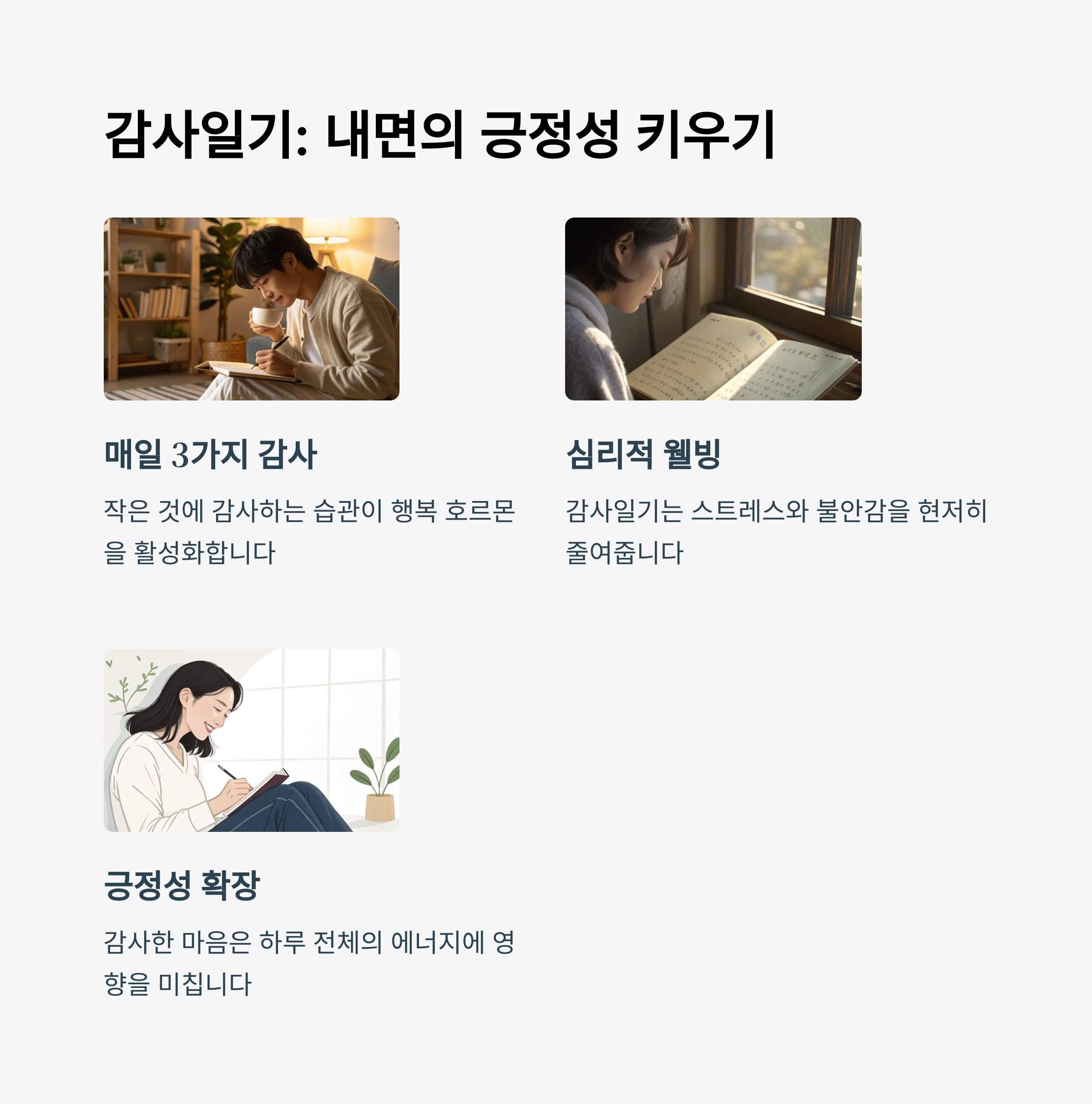 | 아침 스트레칭 | 명상 루틴 | 감사일기 쓰기 |