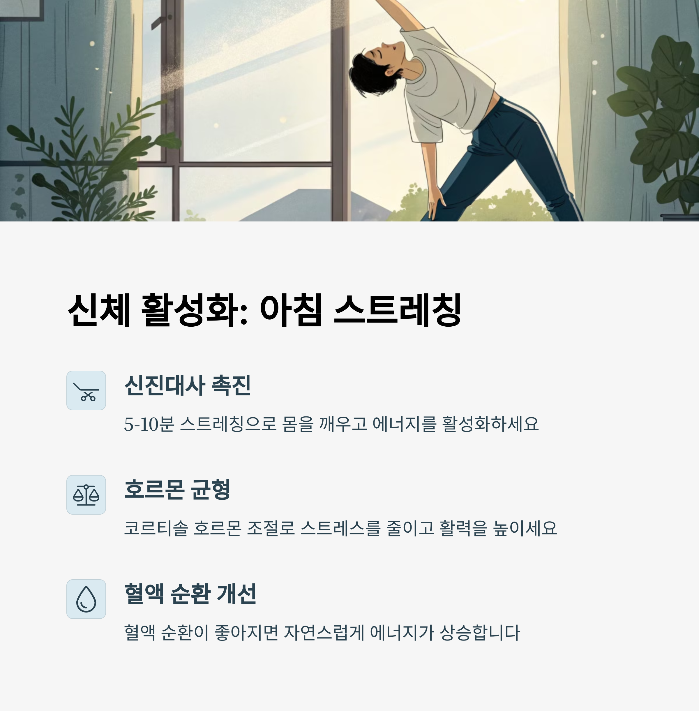 여러분께 에너지 넘치고 활력 있는 하루를 위한 아침 루틴의 중요성을 전하고자 합니다. 아침은 단순히 일어나는 시간이 아니라, 신체와 정신을 깨우는 첫 번째 순간입니다.