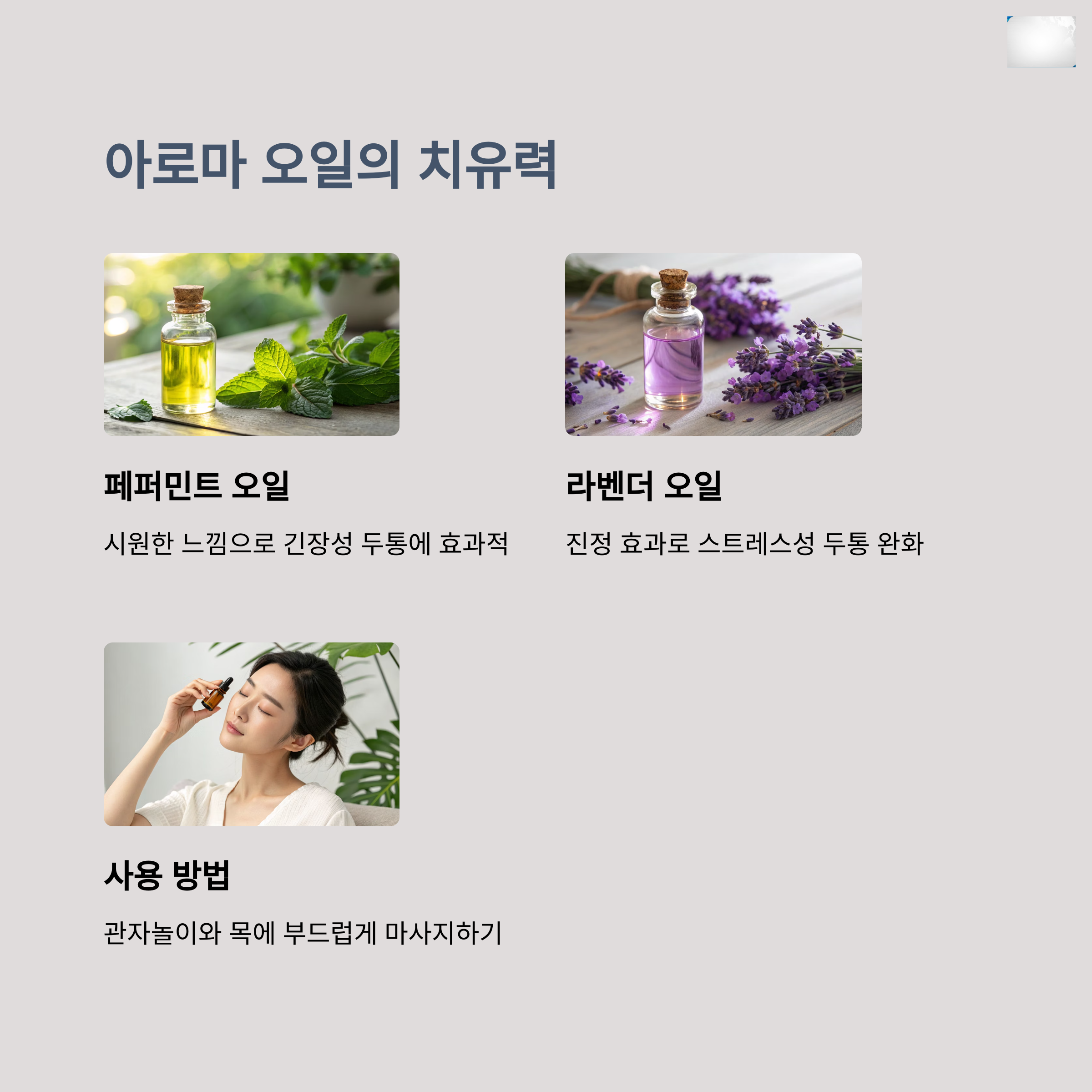 두통에 좋은 아로마 오일 3종 비교