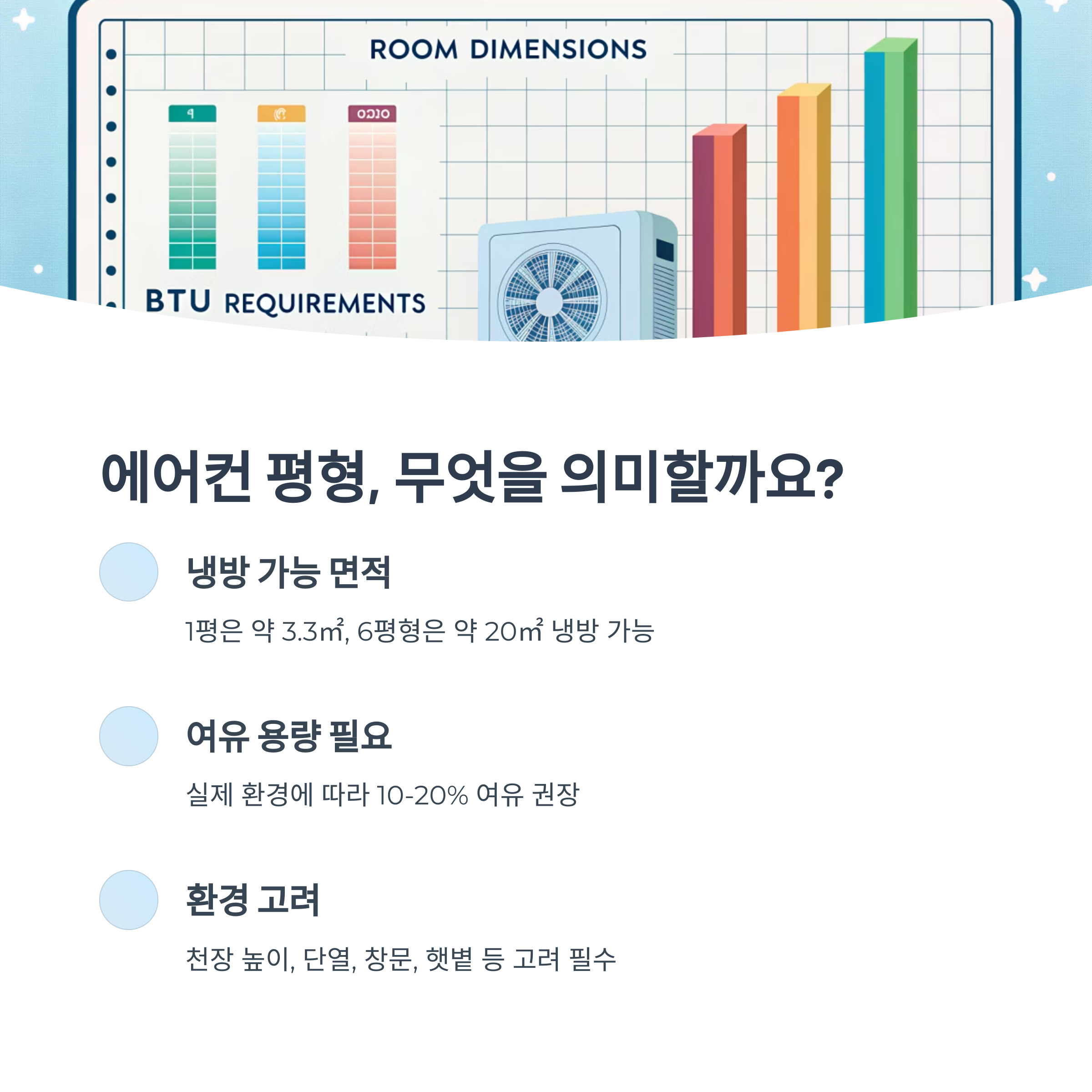 6평? 18평? 우리 집엔 어떤 에어컨이 맞을까? 냉방 면적 계산부터 방 크기별 추천 모델까지, 에어컨 선택에 필요한 모든 정보를 담았습니다.