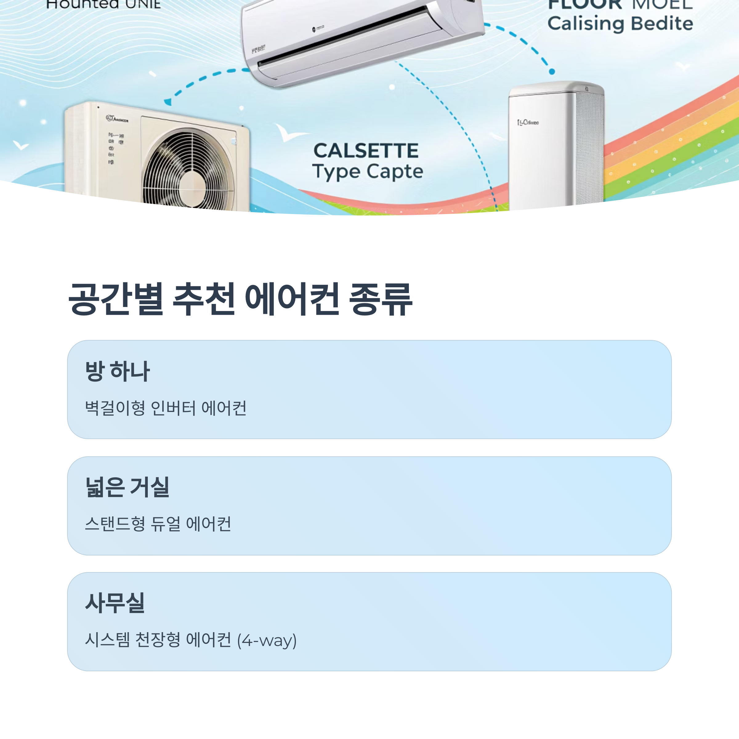 공간 구조에 따라 적합한 에어컨 유형도 달라져요. 잘못 선택하면 시원하지도 않고 설치도 번거로워질 수 있답니다.