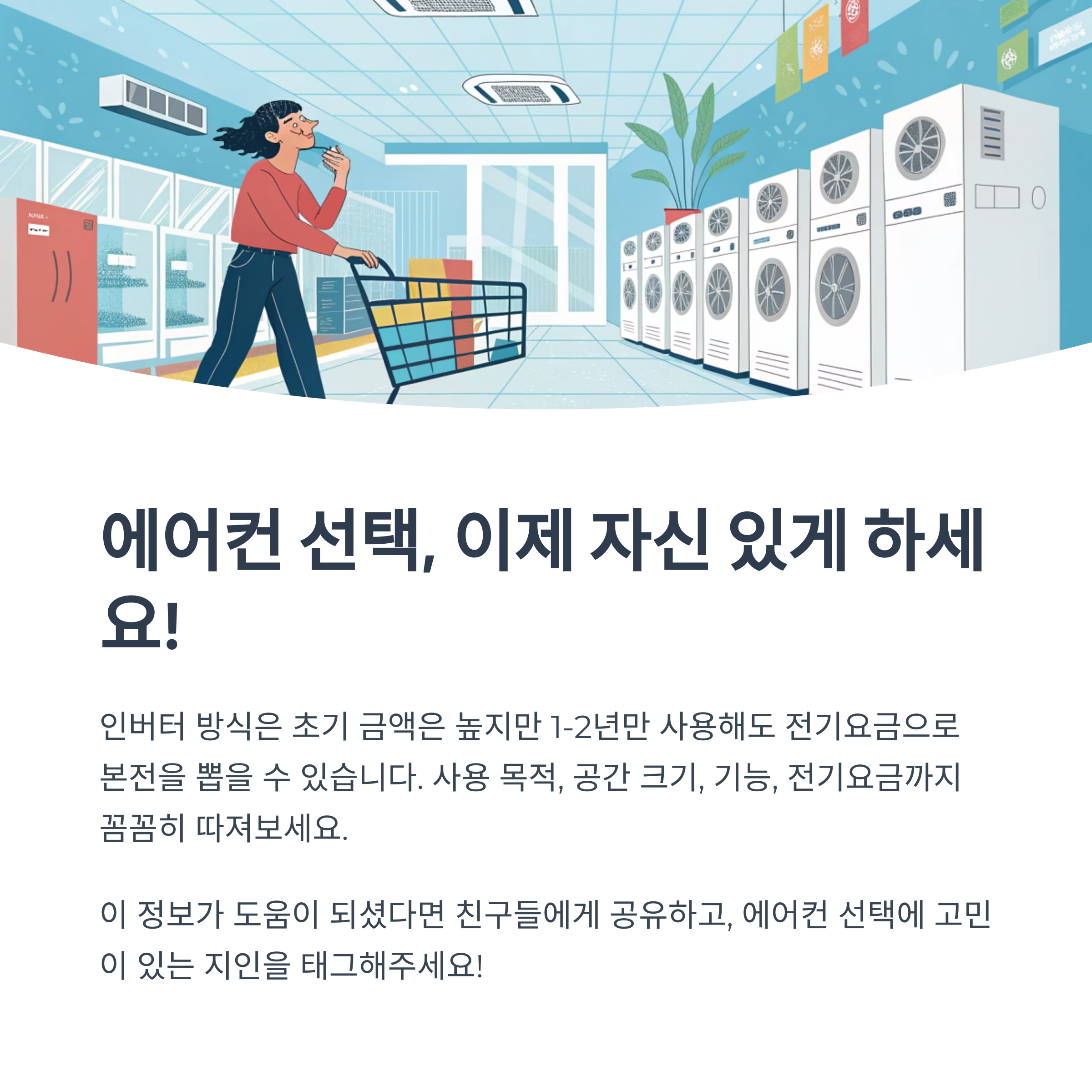 에어컨을 고를 때 단순히 ‘시원하면 그만’이라고 생각했다면, 이제는 한 발 더 나아가야 할 때입니다. 사용 목적, 공간 크기, 기능, 전기요금까지 꼼꼼히 따져서 자신에게 꼭 맞는 제품을 선택해야 장기적으로 후회 없는 소비가 됩니다. 오늘 소개해드린 7가지 기준만 기억하셔도 가정용은 물론 사무실용까지 완벽하게 커버할 수 있습니다. 여러분의 여름, 더 쾌적하게 만들어줄 에어컨 선택에 이 글이 도움이 되셨길 바라며, 언제든 궁금한 점은 댓글로 나눠주세요!