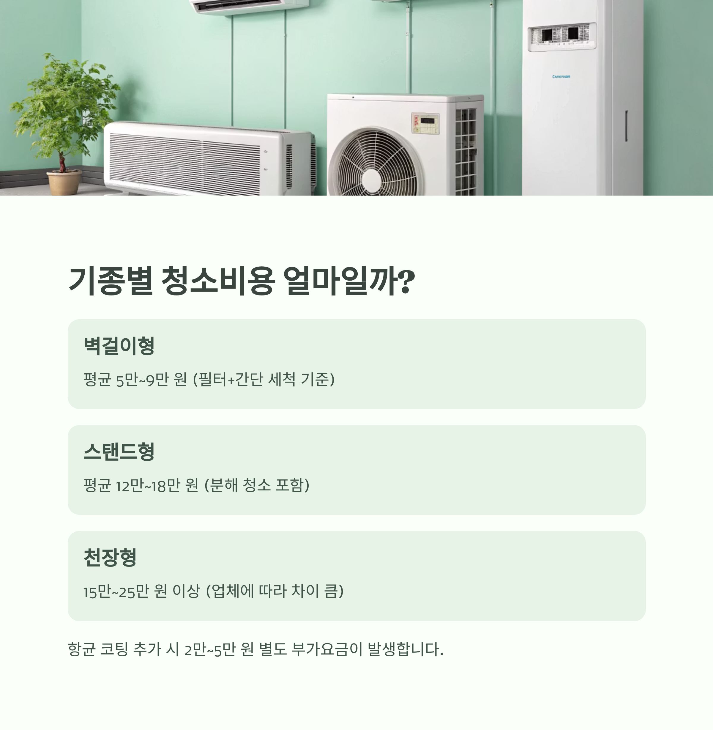 - 벽걸이형 에어컨: 평균 5만~9만 원 (필터+간단 세척 기준)