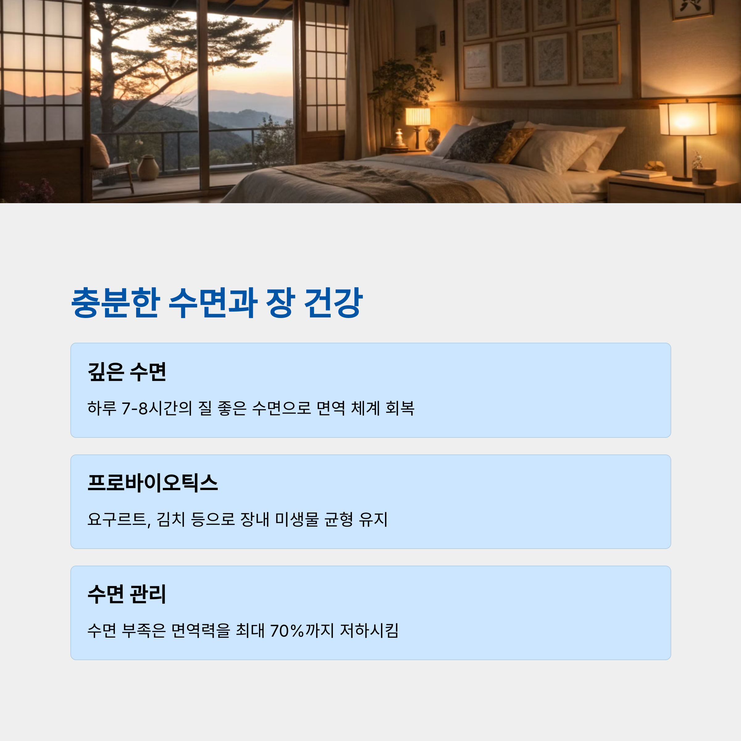 면역력 높이는 음식, 수면과 면역, 스트레스 해소법, 자연 치유, 장 건강, 햇빛과 비타민D, 운동과 면역, 하루 30분 건강습관, 면역력 높이는 방법, 건강한 라이프스타일