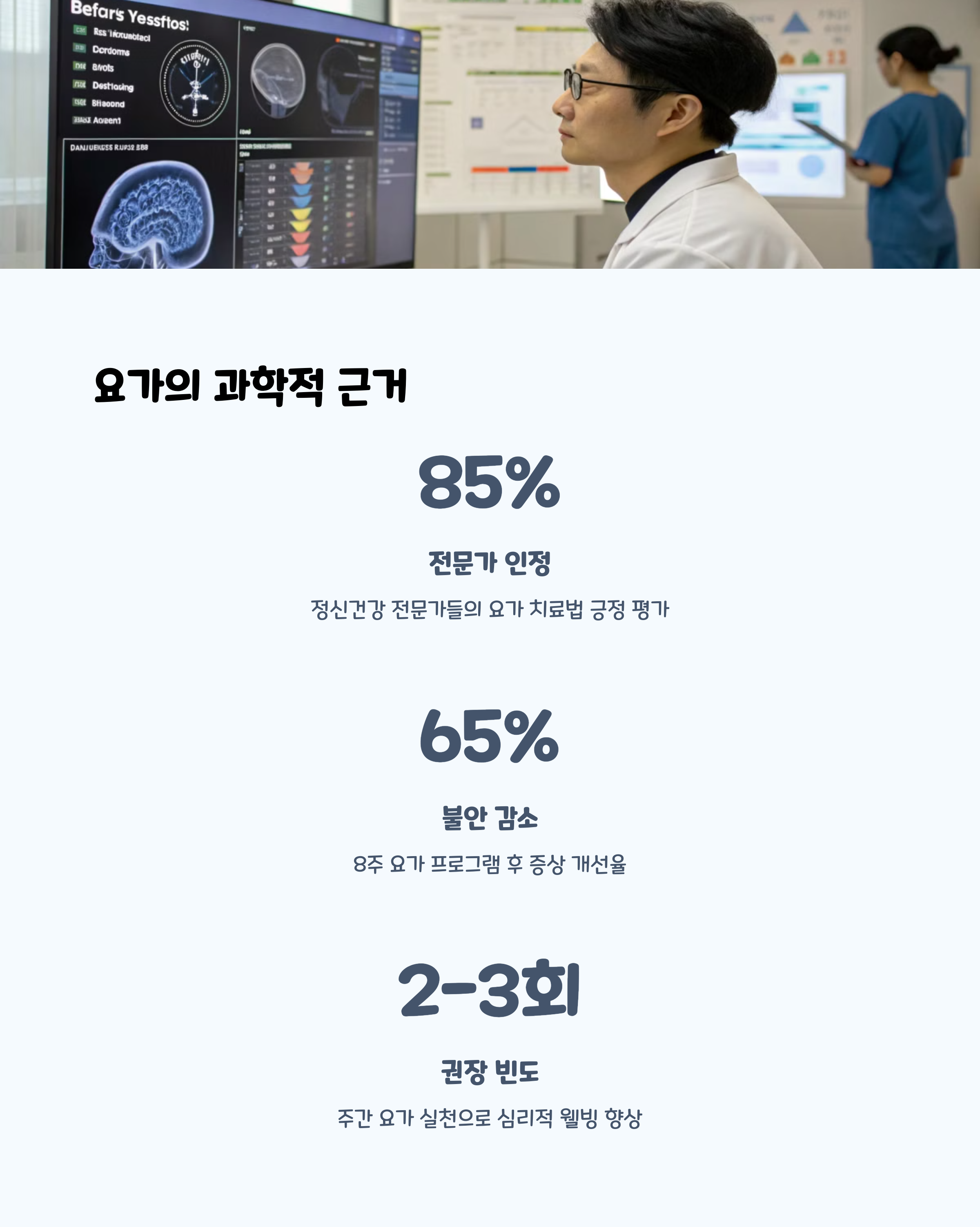 실제로 불안장애를 앓는 환자들이 일주일에 3~4회 정기적으로 요가를 수행했을 때, 증상의 빈도와 강도가 현저히 줄어든 사례들이 보고되고 있습니다.