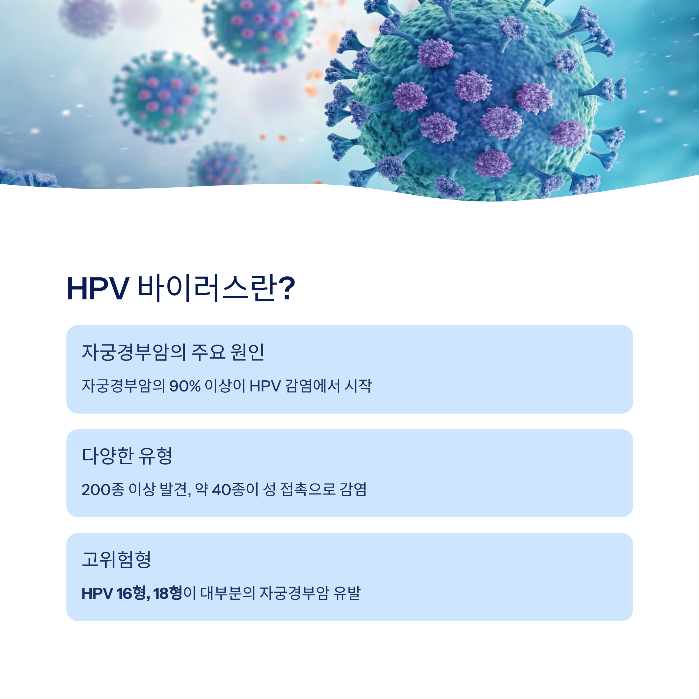 자궁경부암의 원인인 HPV 바이러스에 대해 알고 계신가요? 백신 접종으로 90% 이상 예방할 수 있다는 사실도 많은 분들이 모릅니다. 이 글에서는 자궁경부암의 주요 원인인 HPV 바이러스의 종류와 감염 경로, 자궁경부암으로 발전하는 과정, 그리고 백신 접종 시기와 방법까지 총 5가지 핵심 포인트를 중심으로 누구나 이해할 수 있게 설명드립니다.